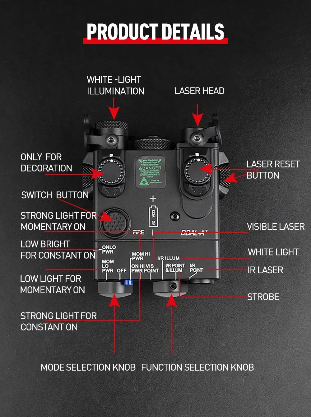 WADSN todo Metal MAWL C1 DBAL A2 NGAL OGL Perst 4 puntero láser punto rojo azul verde IR indicador láser AR15 Airsoft arma vista