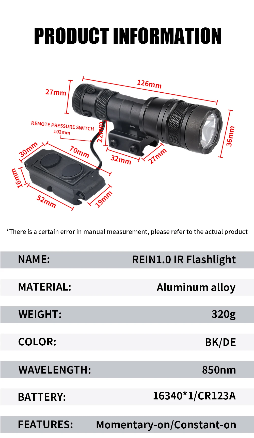 WADSN-microlinterna táctica con luz infrarroja para caza, accesorios para Airsoft, visión nocturna, versión infrarroja, Modelo CD Mark, 1,0