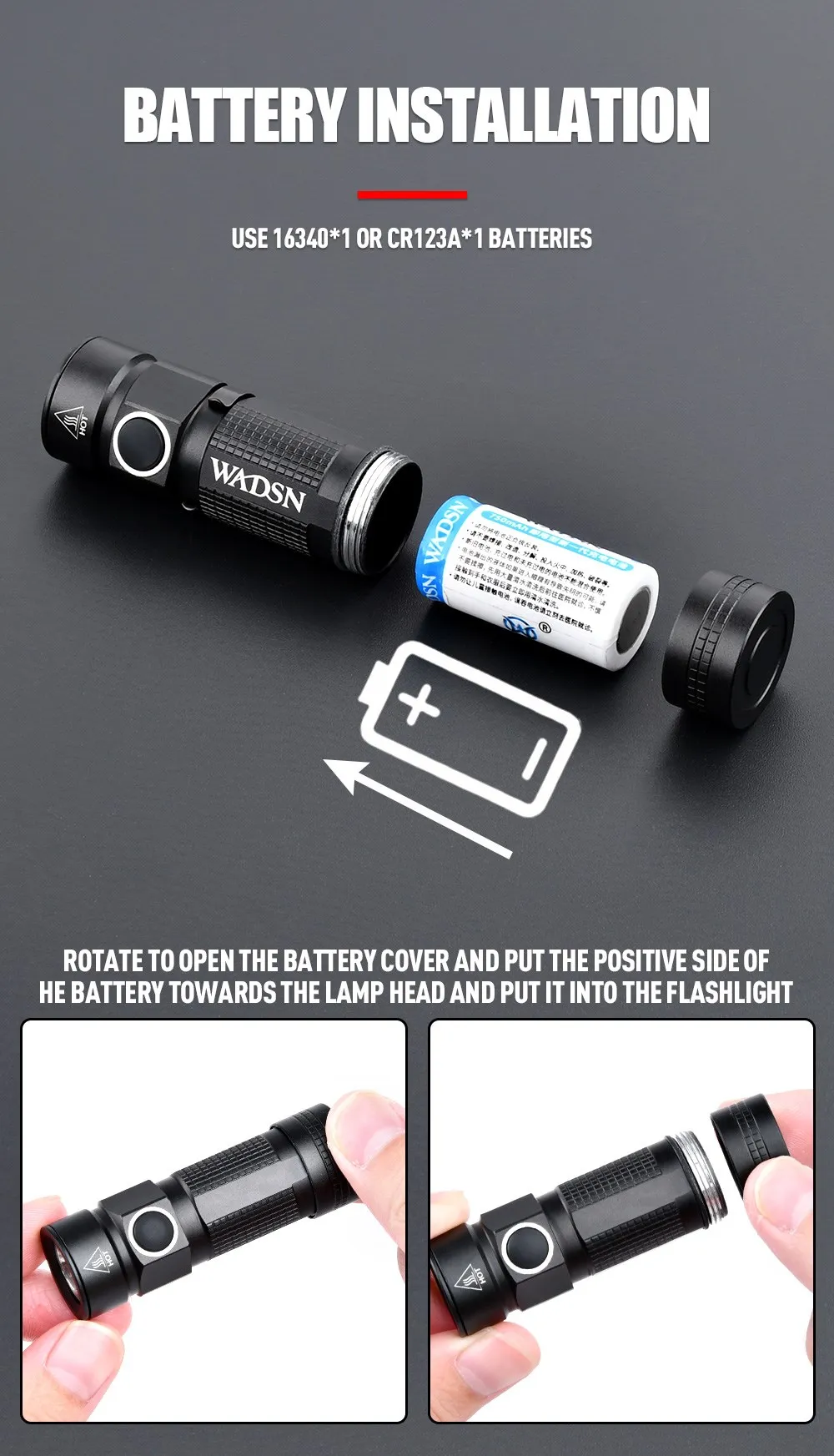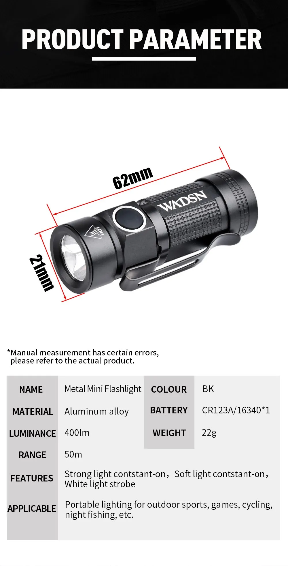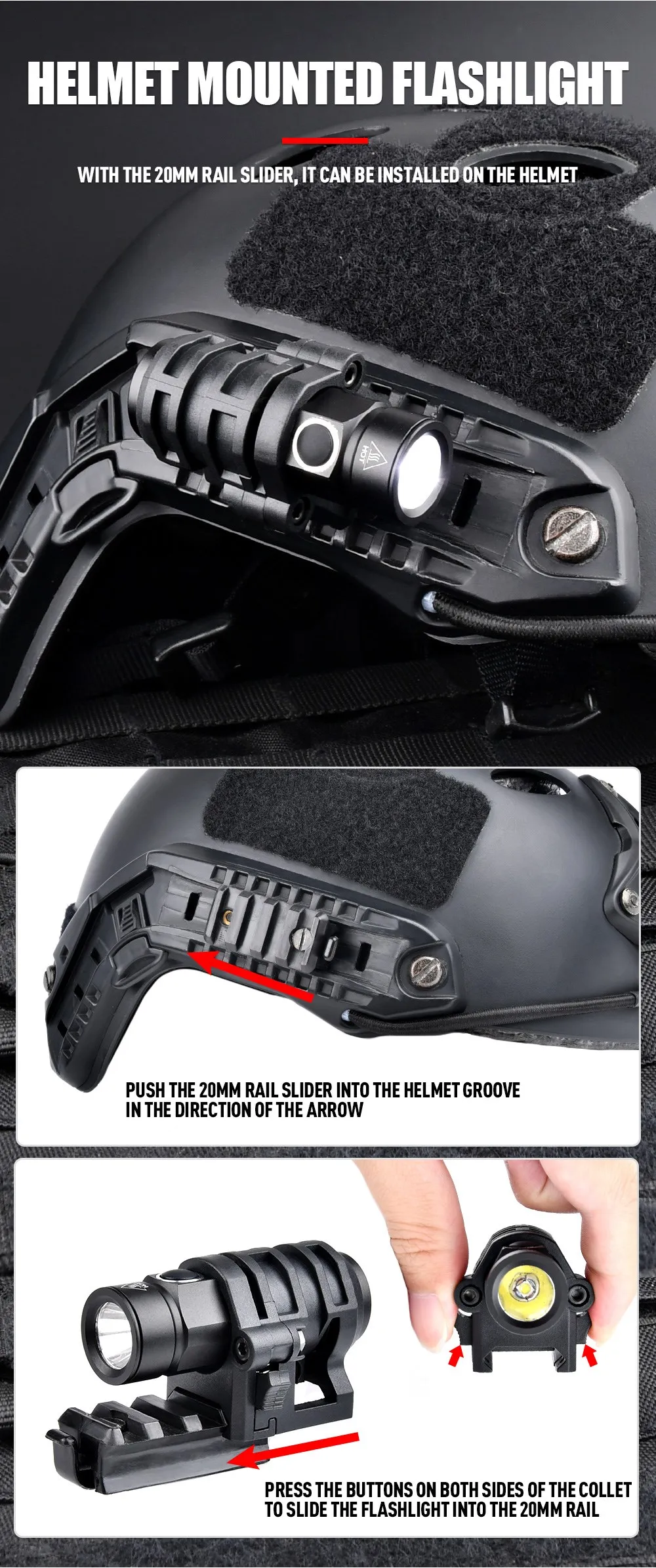 WADSN Mini arma táctica de Metal, linterna LED rápida para casco, Airsoft estroboscópico, compatible con riel de 20mm, luz de caza de explorador militar