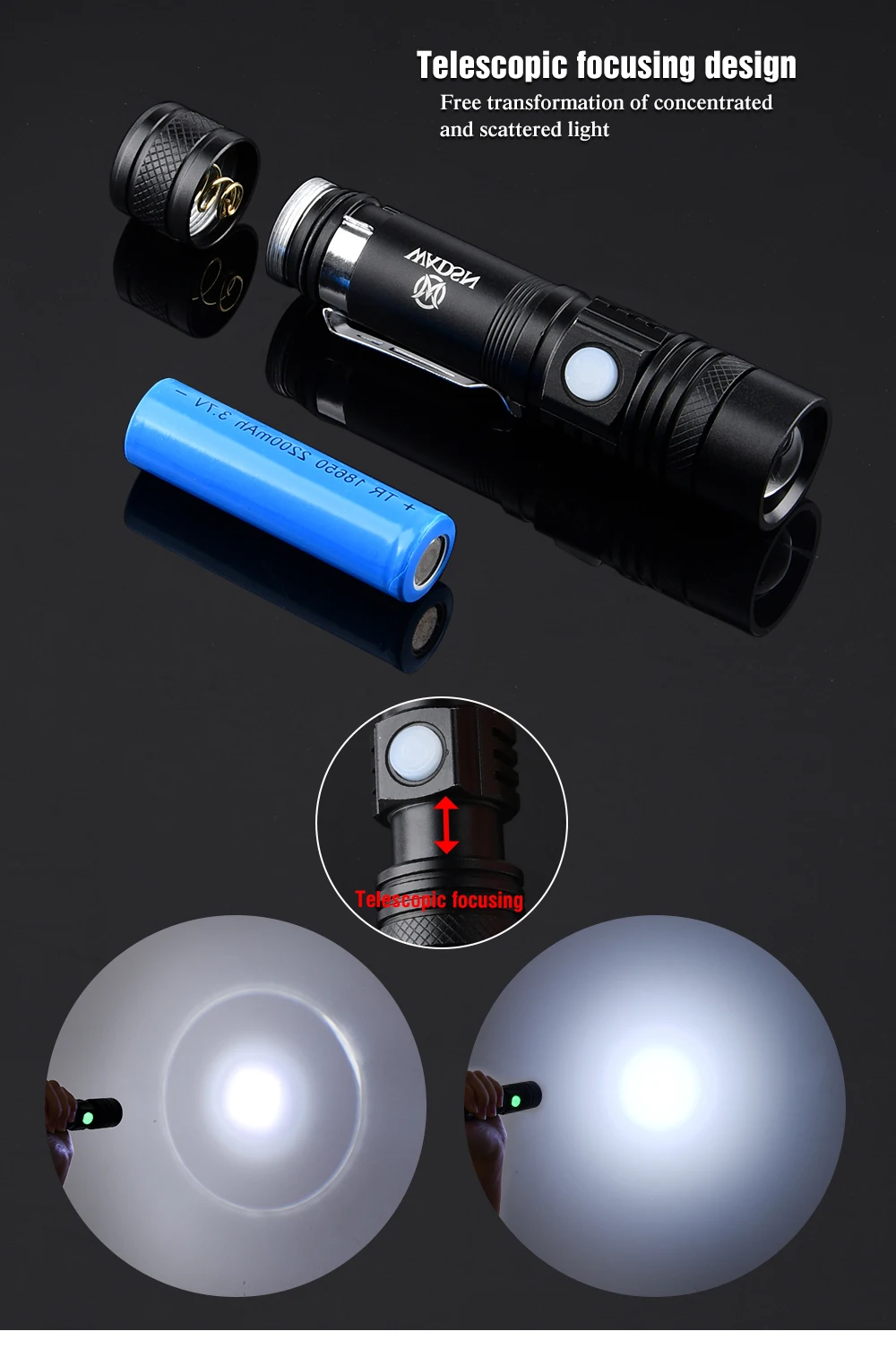WADSN MINI linterna de brillo ajustable, imán fuerte tipo C, recargable por USB, potentes lúmenes, luz para acampar al aire libre