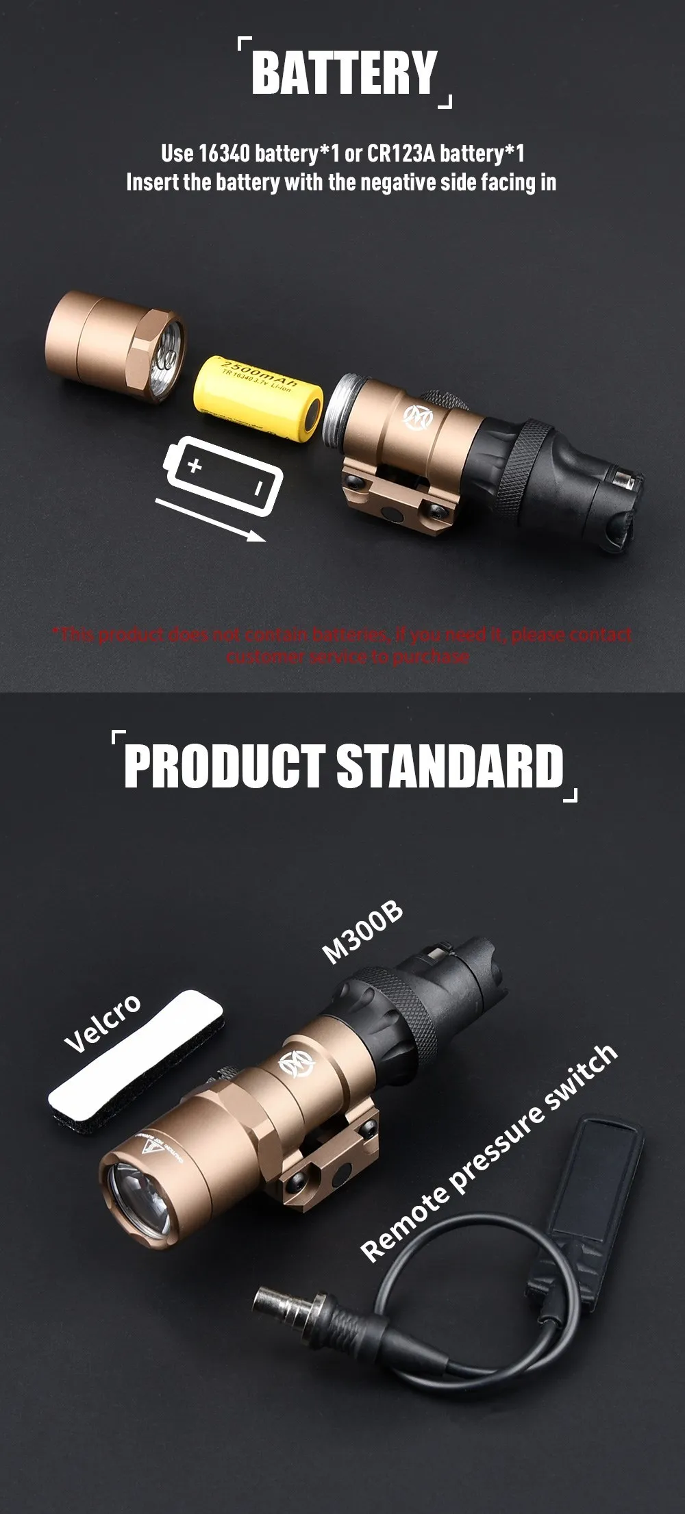 WADSN-minilinterna táctica M300 M300B para caza, luz LED IR de explorador, accesorio de arma Airsoft, compatible con riel de 20mm con interruptor de presión