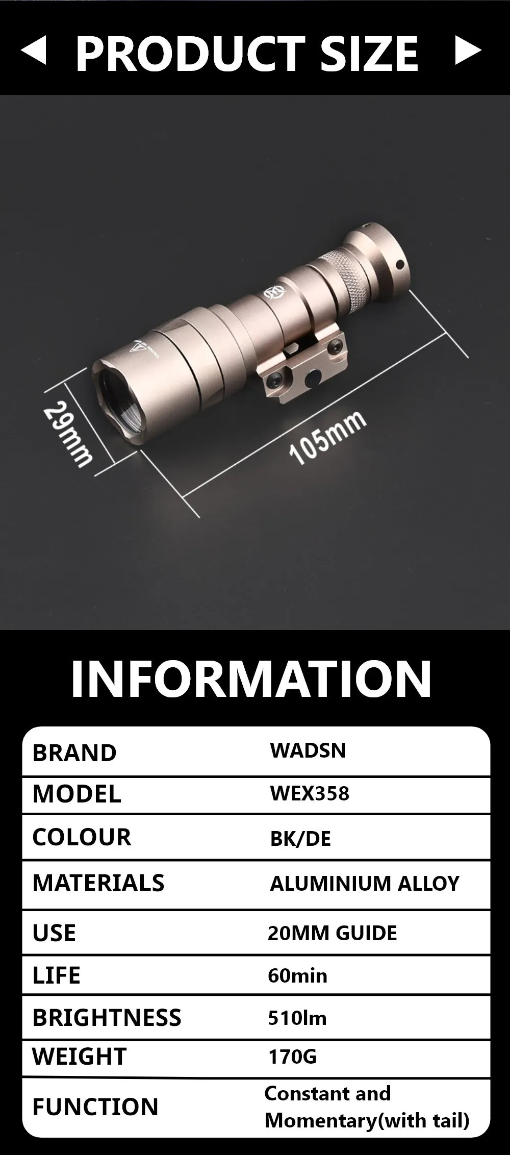 WADSN-minilinterna táctica M300 M300B para Rifle, luz LED para arma, compatible con riel Picatinny de 20mm