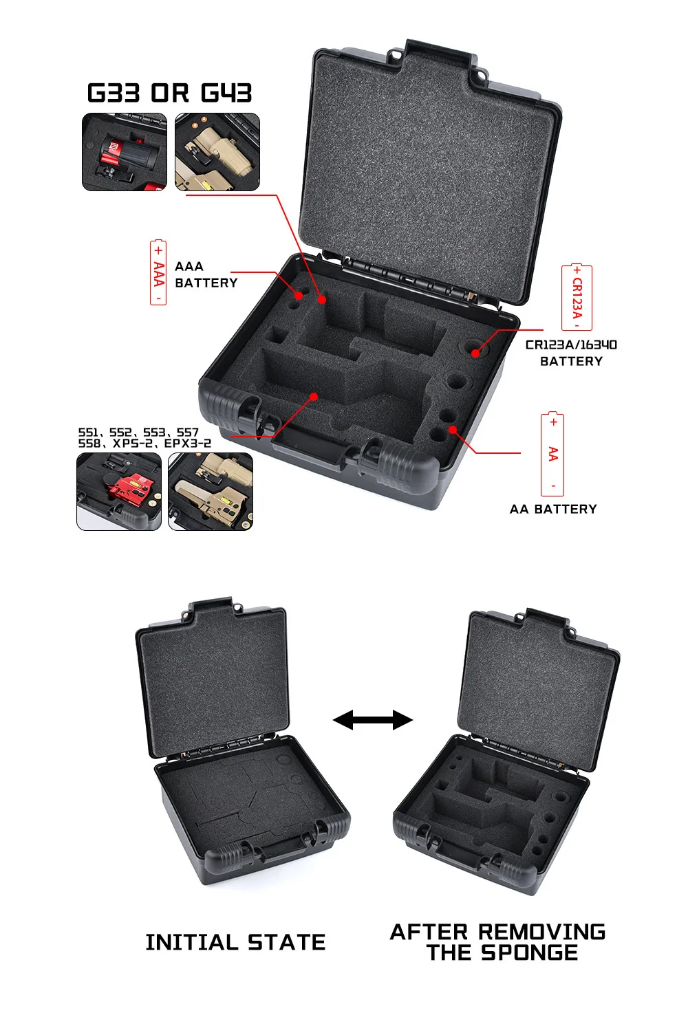 Wadsn-mira telescópica táctica, caja protectora de punto rojo para Eotech 551, 552, 553, XPS, HHS, G43, G33, caja de almacenamiento, miras híbridas