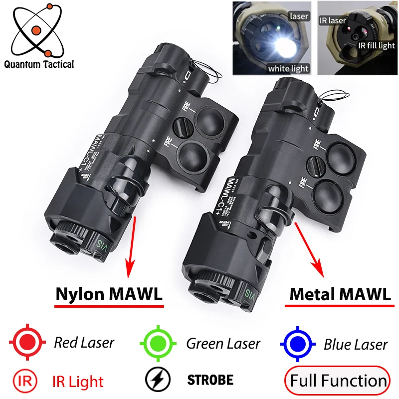 WADSN Nueva actualización MAWL C1 Laser rojo, azul, verde Lámpara de caza LED Airsoft Iluminación CN IR Versión de función completa en nailon o metal