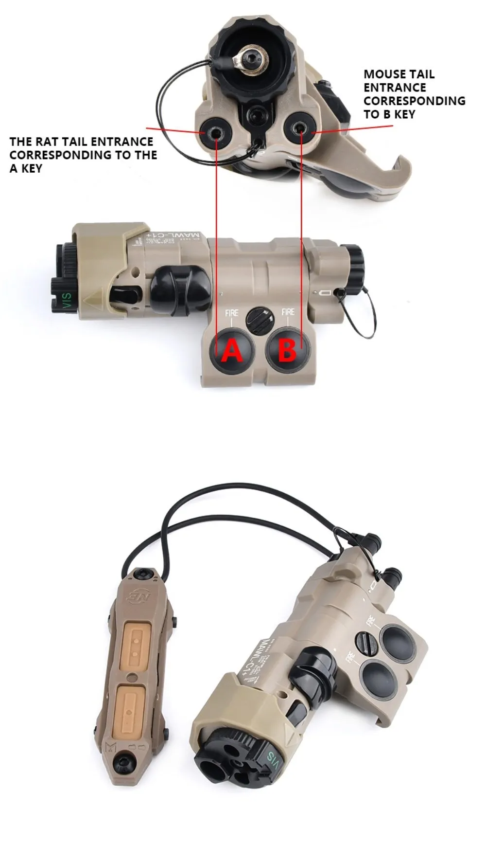 WADSN nuevo MAWL-C1 actualizado táctico Airsoft de nailon de plástico CNC de puntería LED punto rojo verde azul arma de caza luces IR láser