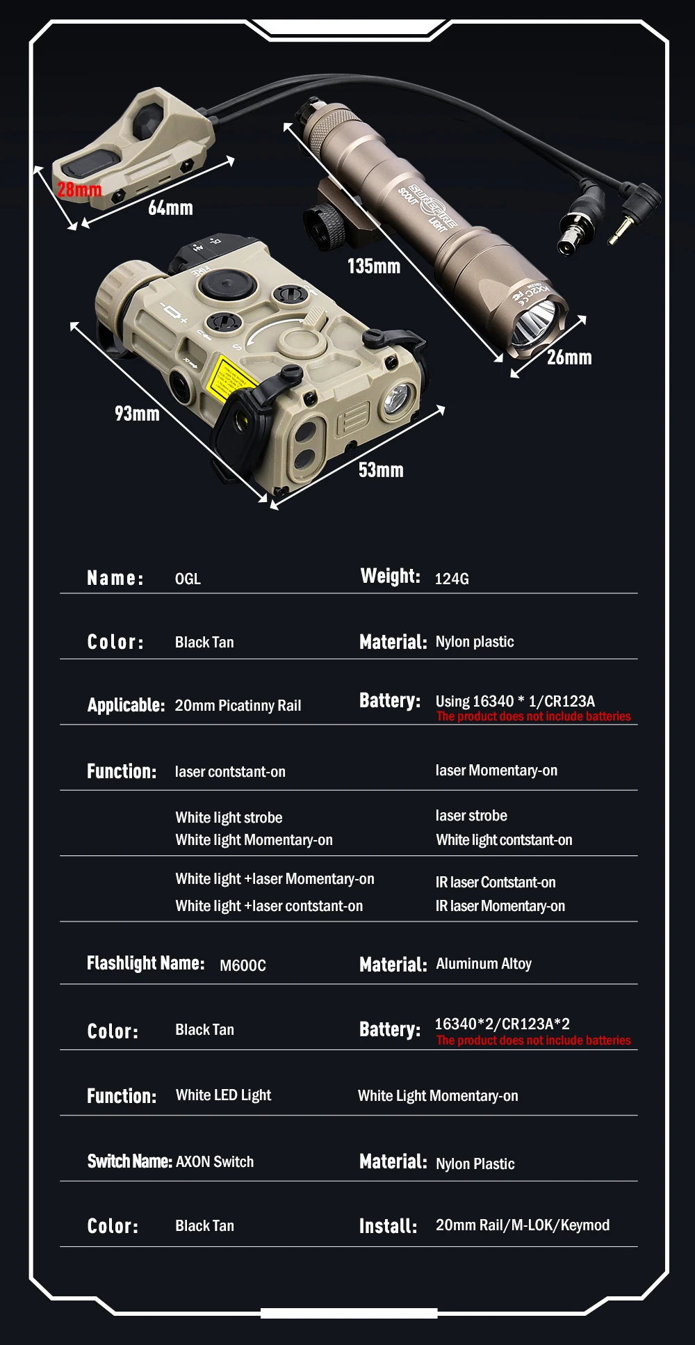 WADSN OGL linterna láser IR roja, verde y azul en pistola mira láser M600C luz de explorador AXON interruptor de enchufe Dual conjunto combinado de engranajes Airsoft