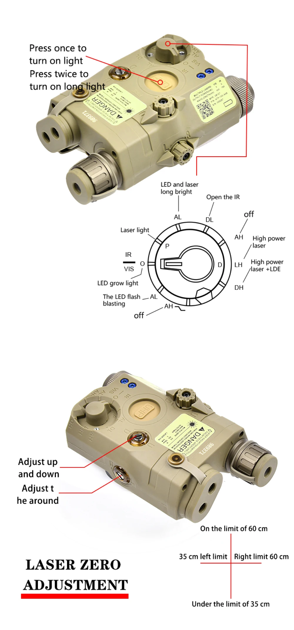 Con un punto láser verde/azul, este accesorio proporciona una orientación precisa, lo que lo convierte en una herramienta valiosa para disparos de precisión.