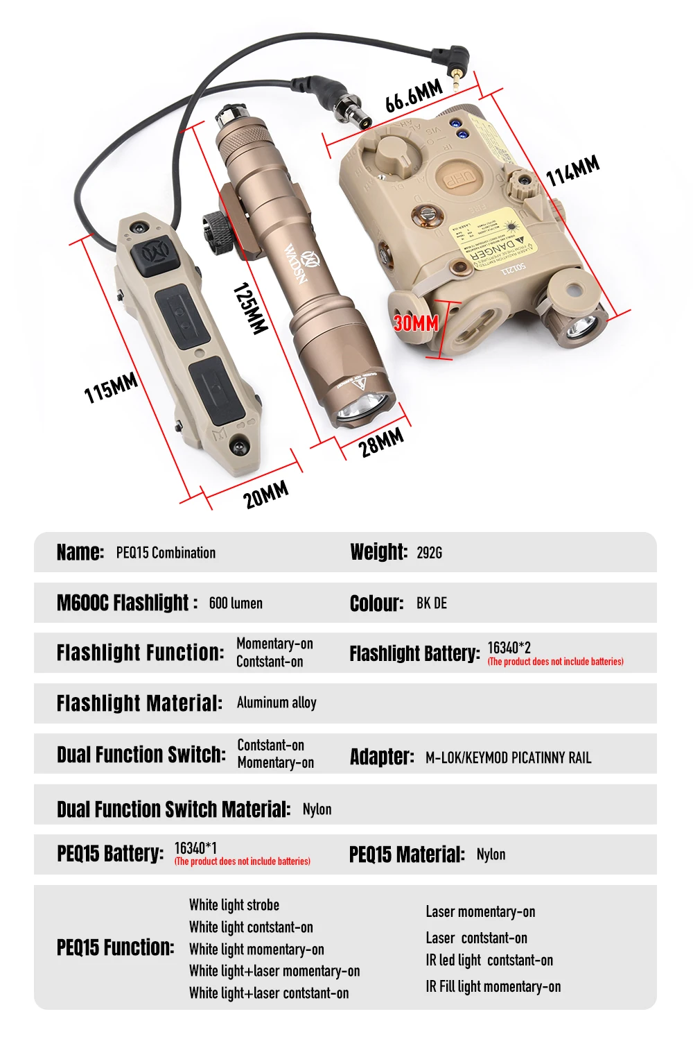 WADSN PEQ15 rojo verde azul puntería láser indicador IR Surefir M600 linterna táctica de doble Control interruptor remoto apto para riel de 20mm