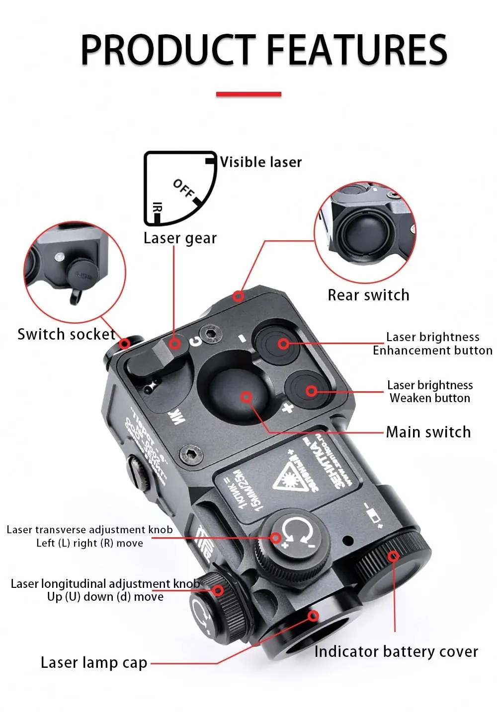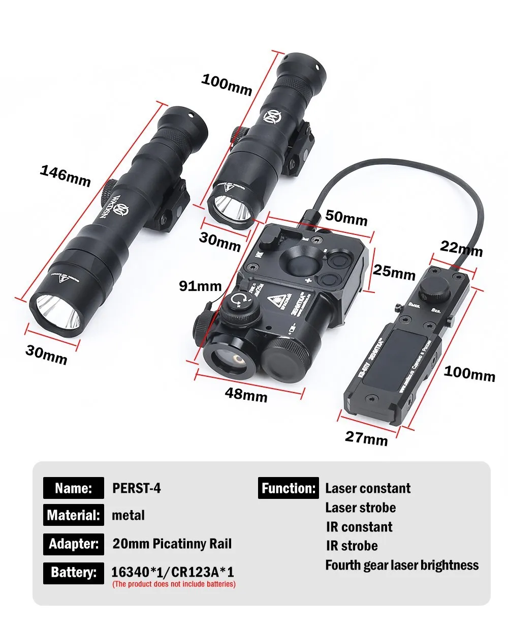 WADSN-Indicador estroboscópico de puntería láser IR de punto rojo verde azul de metal táctico M300A M600DF, Arma de caza, linterna para acampar