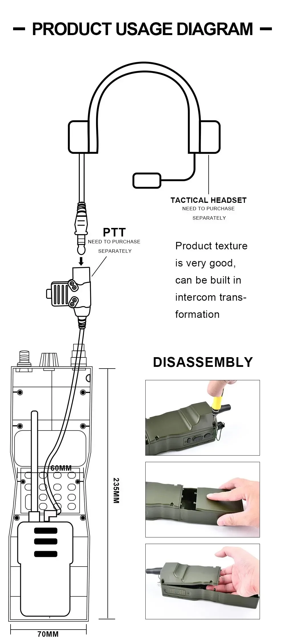 WADSN PRC-148/152 Walkie Talkie Paquete de antena plegable modelo ficticio caso de comunicación caja de Radio no funcional carcasa del interfono