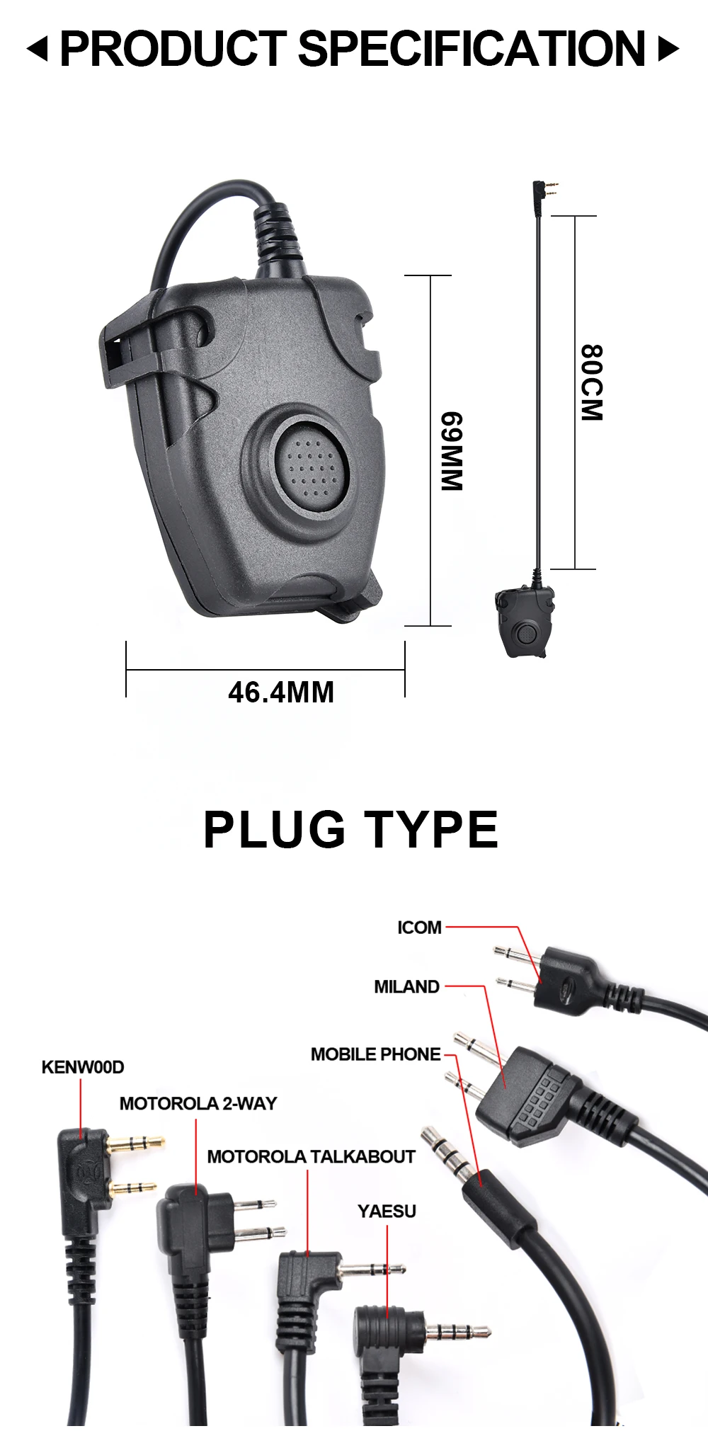 Fabricado con materiales duraderos, el botón de interfono para auriculares tácticos WADSN PTT garantiza un rendimiento y confiabilidad duraderos.