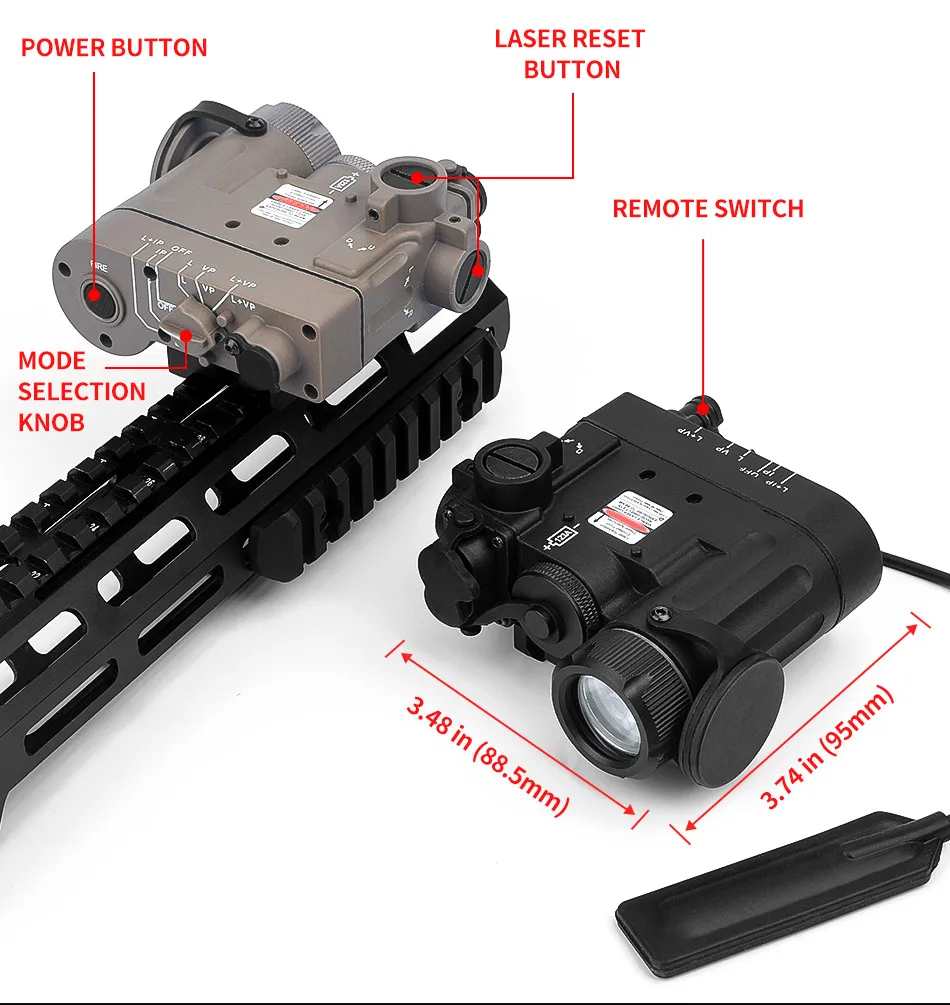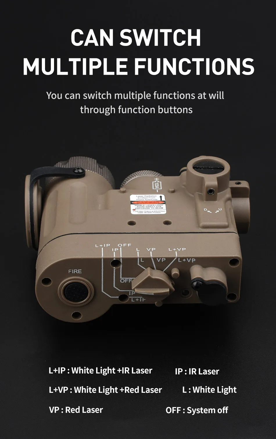 WADSN Puntero Láser de Punto Rojo, Luz Blanca IR Multifunción DBAL MKII, Luces Tácticas para Armas de Airsoft