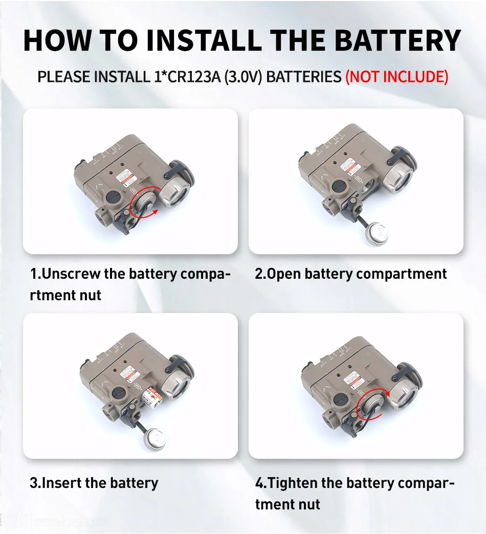 Batería: 1 * CR123A (3,0 V) o 1*16340 (3,7 V) (no incluida)