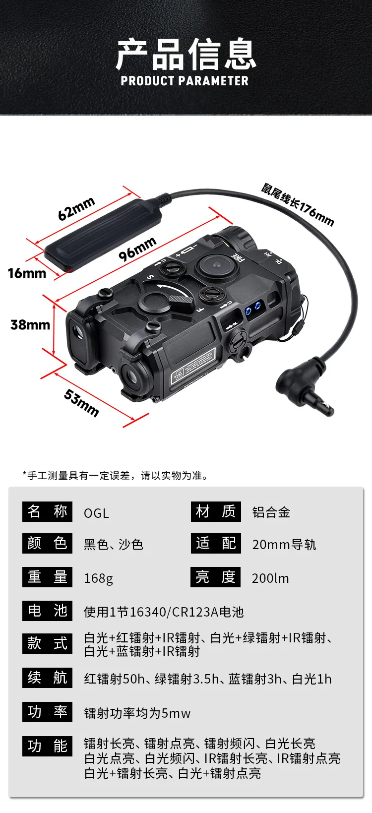 WADSN-puntero láser de Metal OGL, luz blanca Ir, Flash, PEQ15, funda de batería