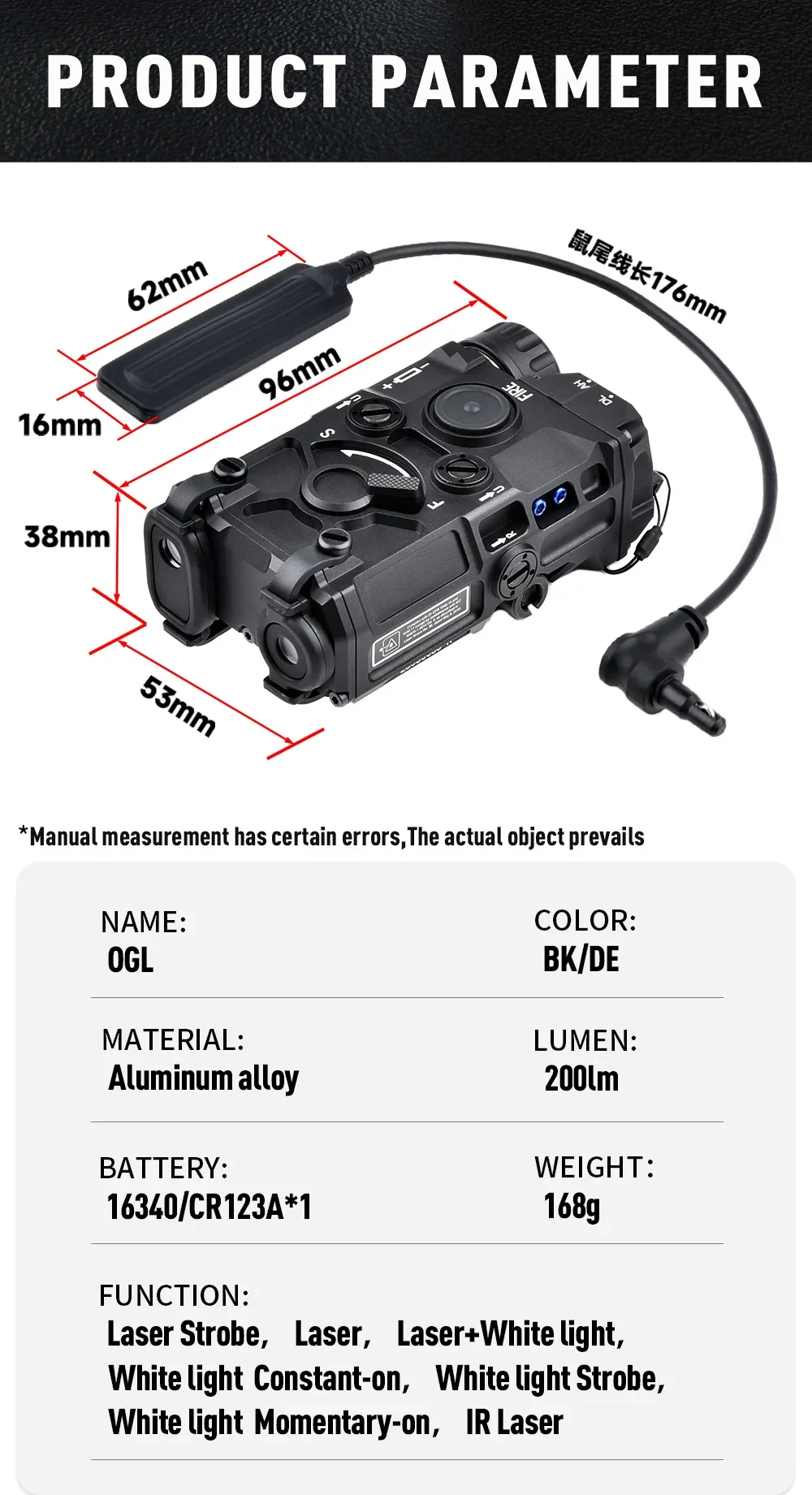 WADSN Full-Metal OGL IR Sight Pointer Red Green Blue Dot Laser Strobe White LED Hunting Flashlight New Airsoft Ogl Scout Light