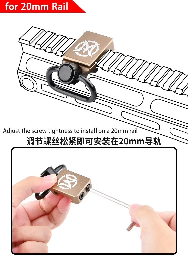 WADSN QD Sling Mount UN Tactical 45 grados Offset Qd adaptador Metal EO SI Gloc Slings Base para riel de 20MM accesorios de caza