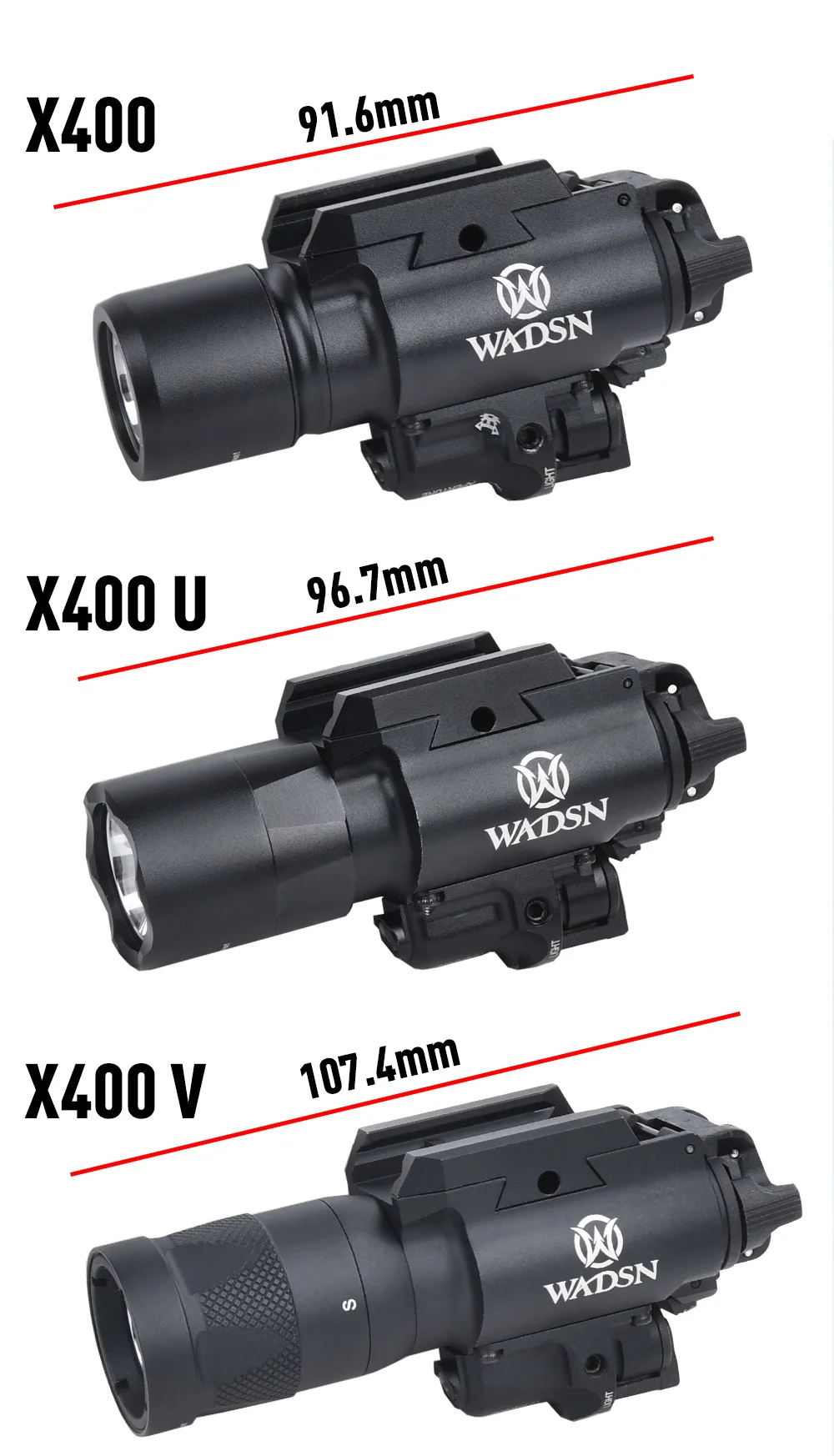 WADSN serie X400 linterna láser colgante luz LED estroboscópica para arma de exploración táctica Airsoft pistola de pistola de caza luz X400V X400U