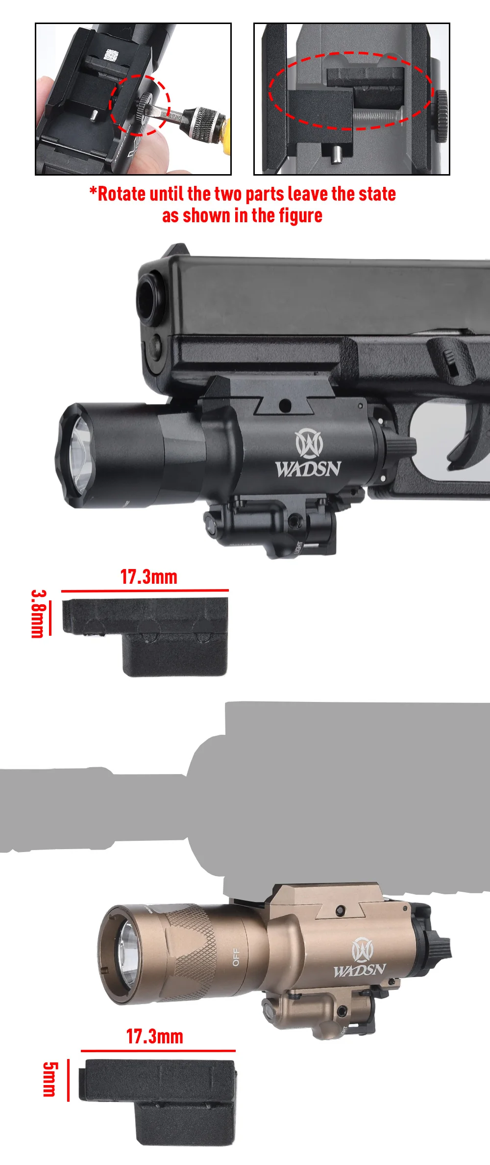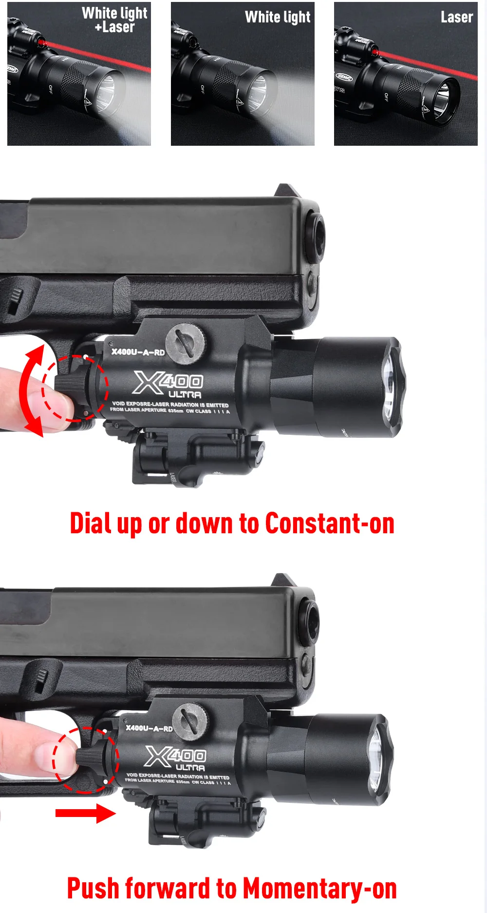WADSN serie X400 linterna láser colgante luz LED estroboscópica para arma de exploración táctica Airsoft pistola de pistola de caza luz X400V X400U