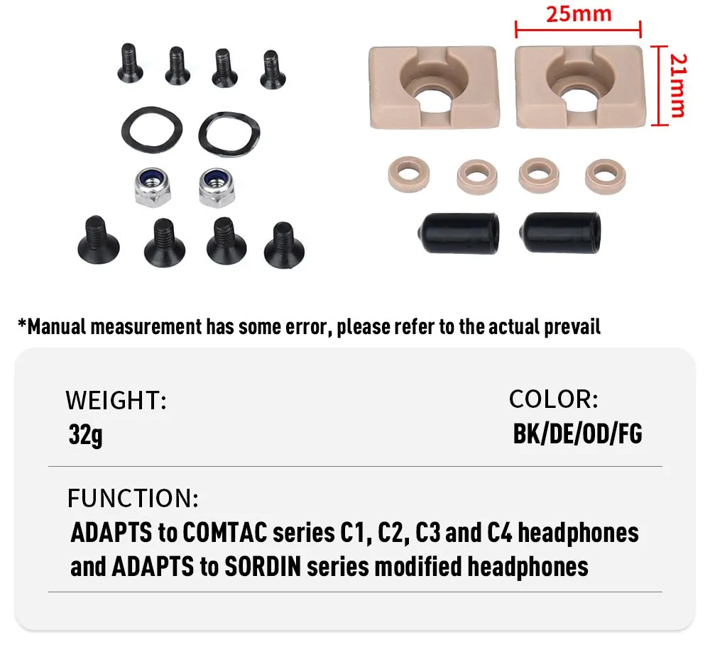SE ADAPTA a los auriculares C1, C2, C3 y C4 de la serie COMTAC y SE ADAPTA a los auriculares modificados de la serie SORDIN