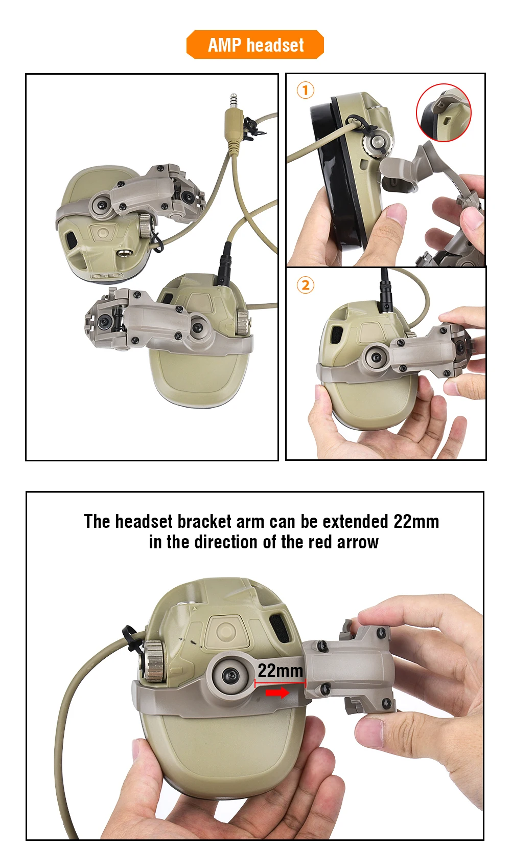 WADSN soporte para auriculares tácticos colgantes, soporte giratorio de 360 °, adaptable al casco Wendy FLUX, casco rápido, piezas para auriculares de caza al aire libre