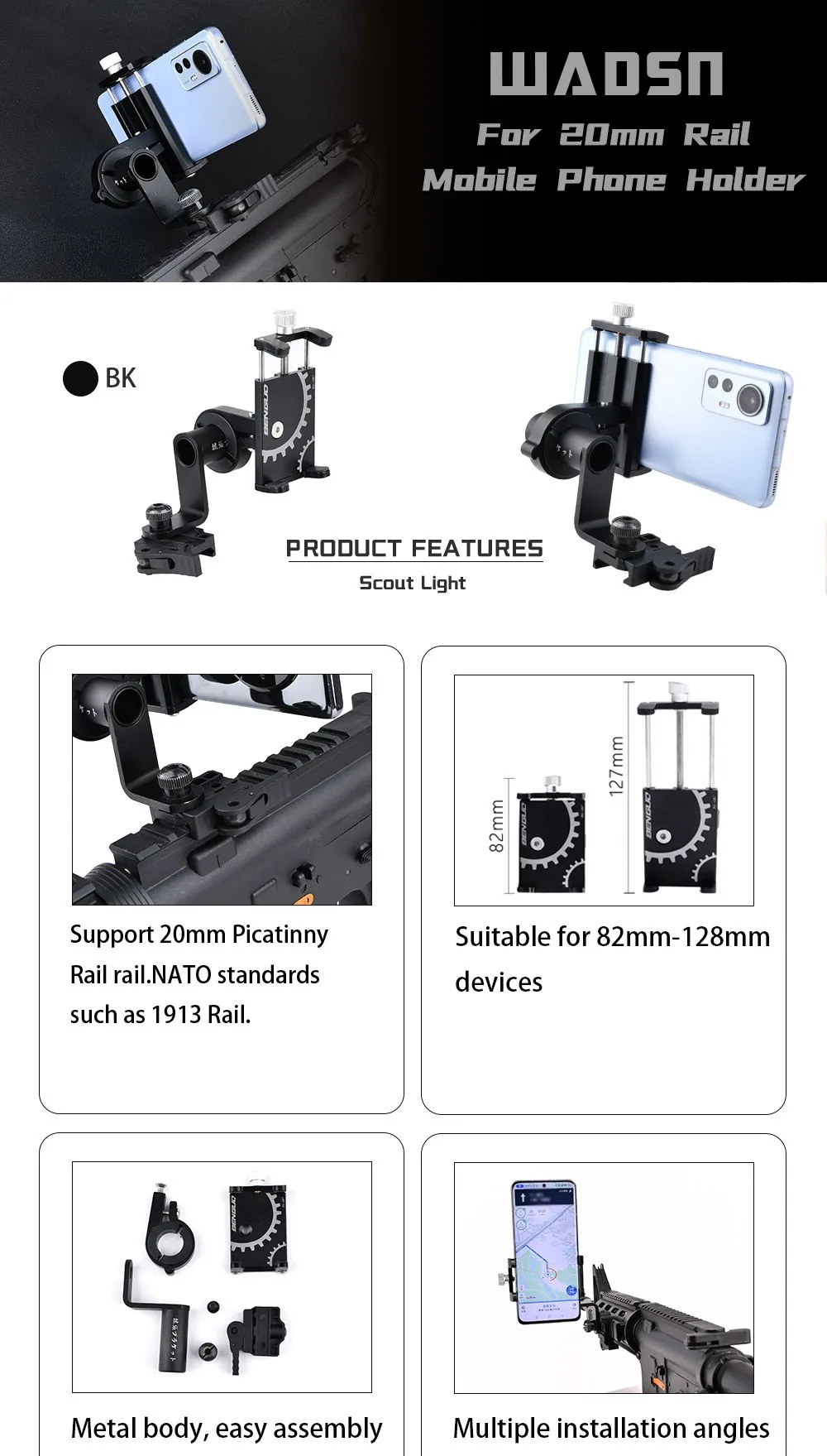 WADSN soporte táctico para teléfono móvil, riel fijo Picatinny de 20mm, soporte de Metal para tiro al aire libre, búsqueda, navegación, Batalla, Video corto