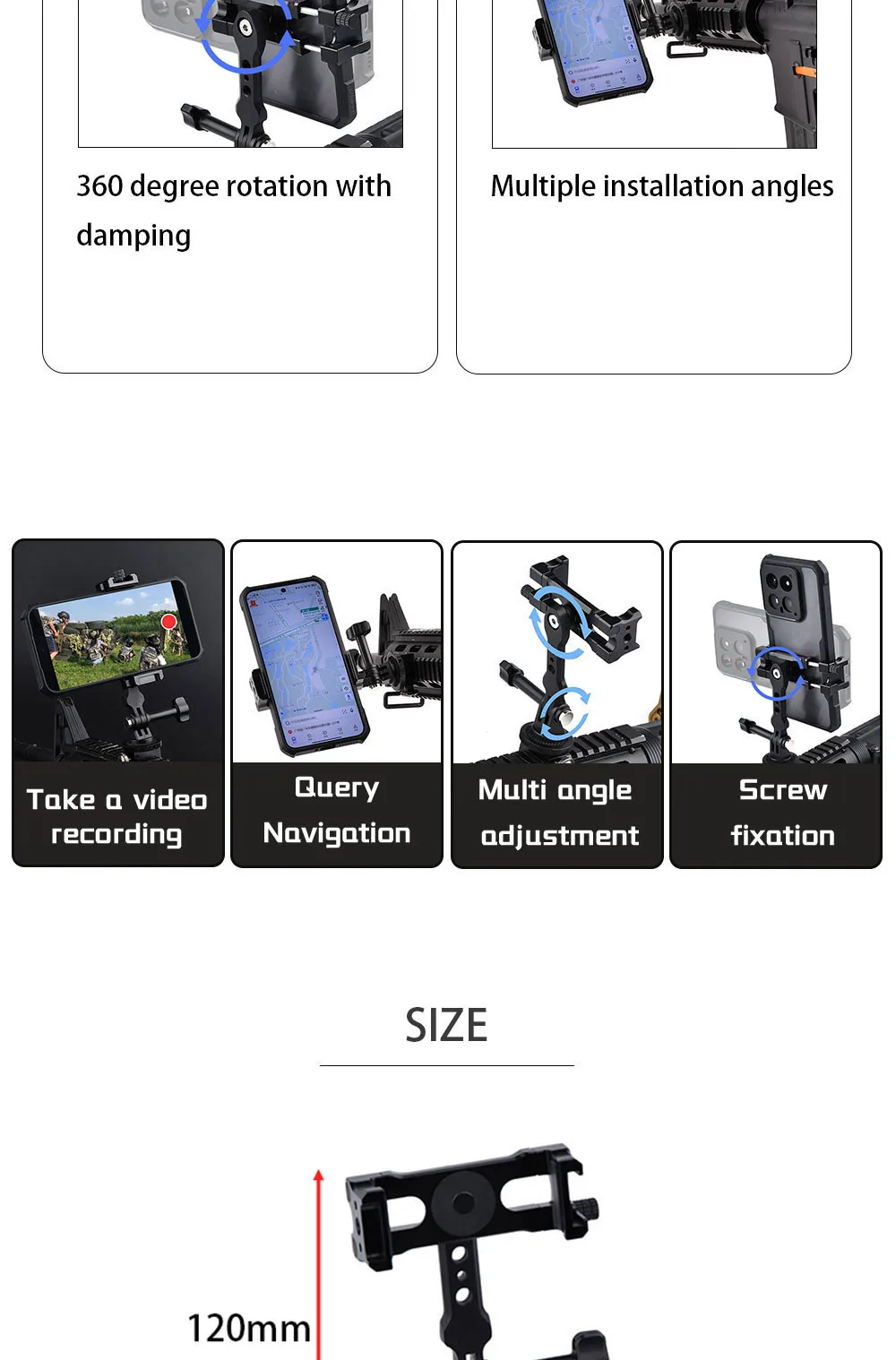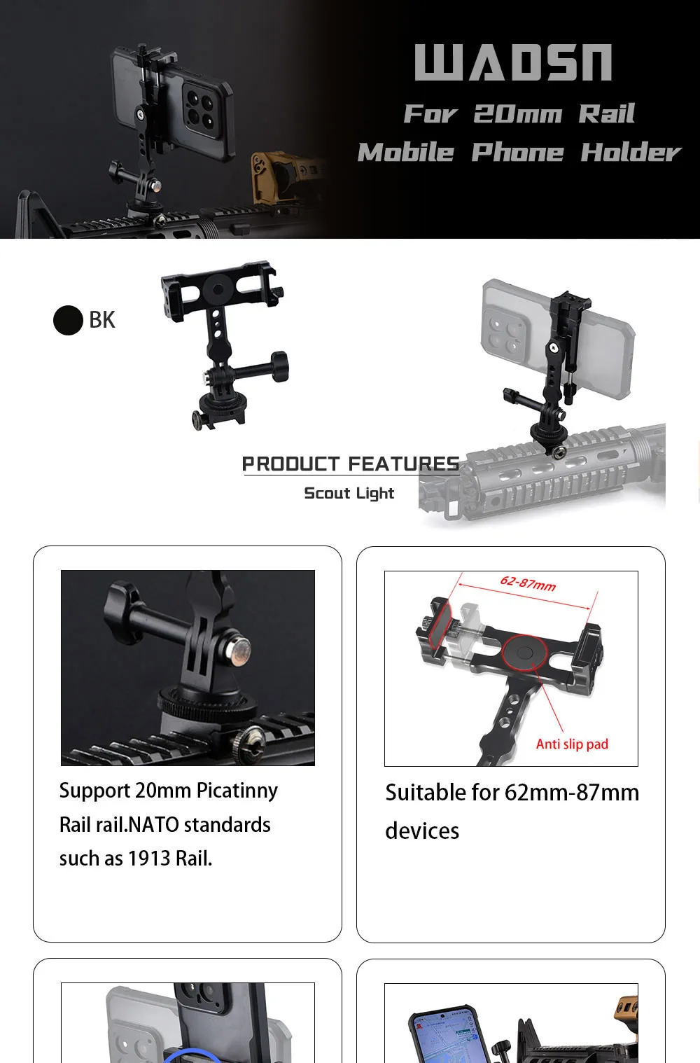 WADSN soporte para teléfono móvil, montaje para riel Picatinny de 20mm, accesorios para caza, Airsoft, pistola, disparo en primera persona, vídeo de Youtube