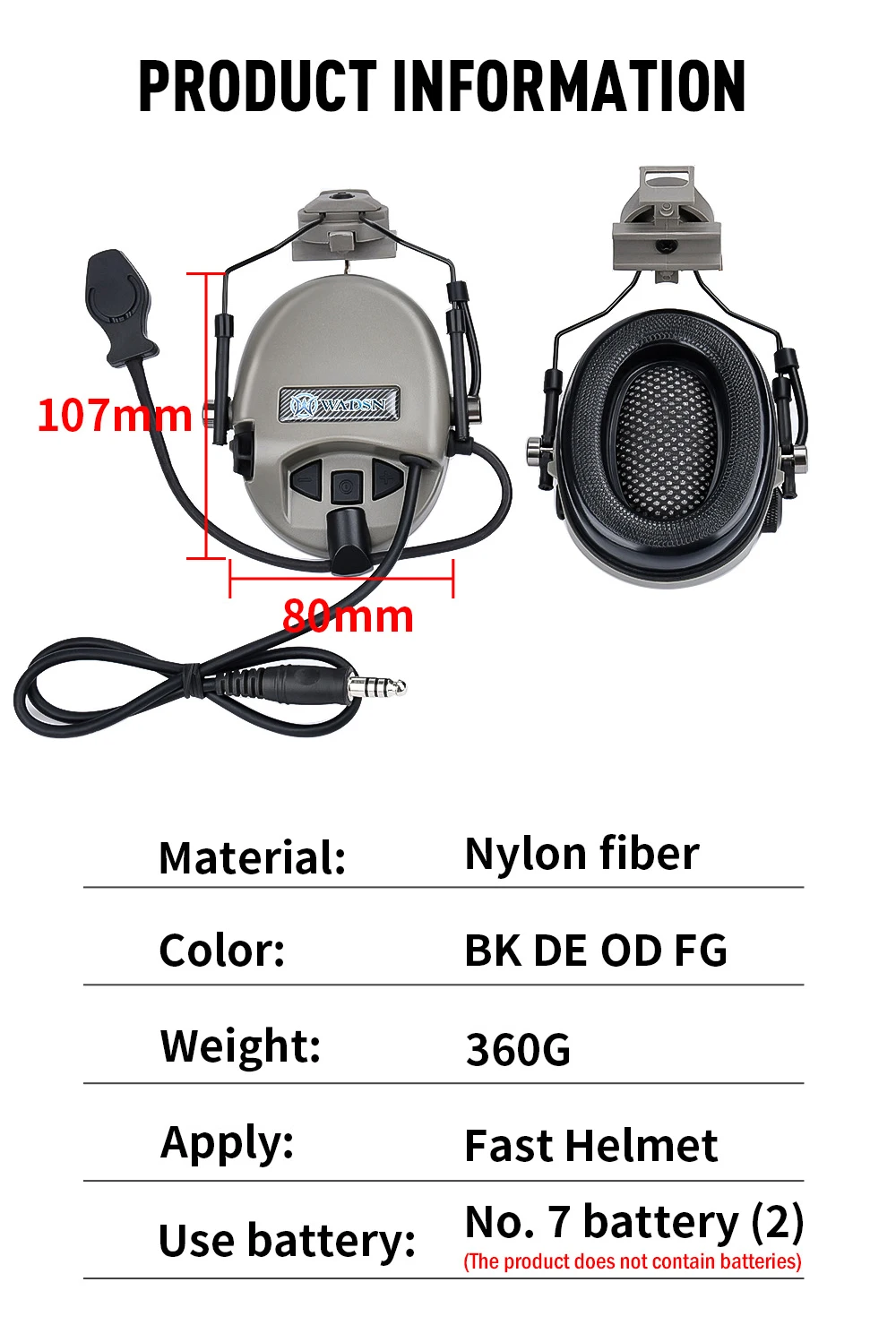 WADSN Sordin-cascos tácticos, auriculares con adaptador de riel de 20mm, auriculares para caza al aire libre, comunicación Civil, U94 PTT