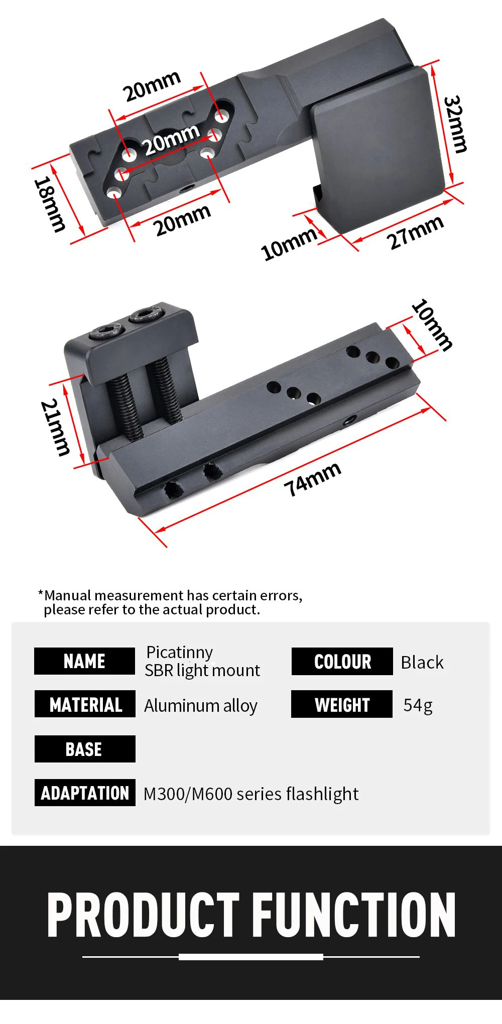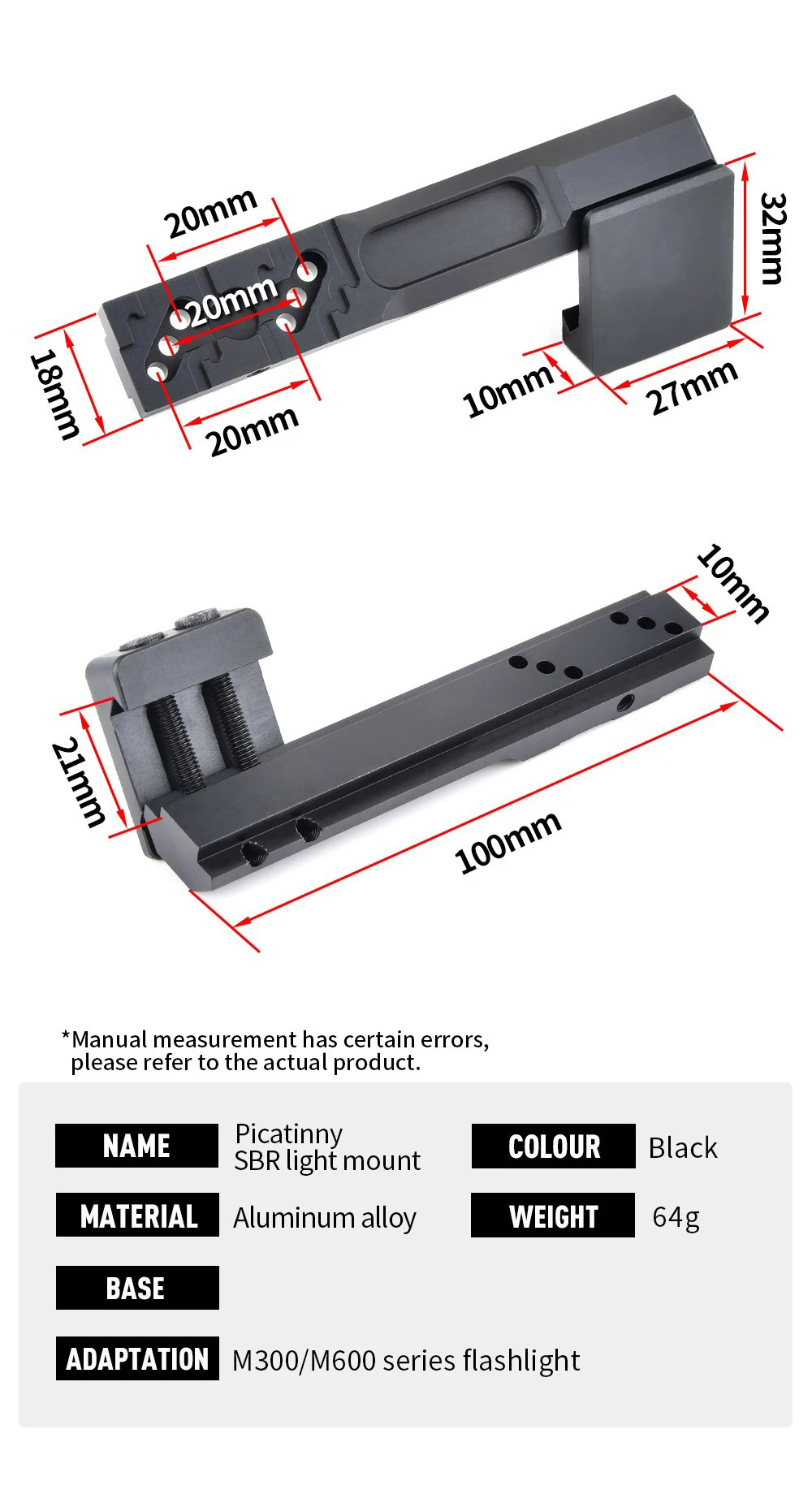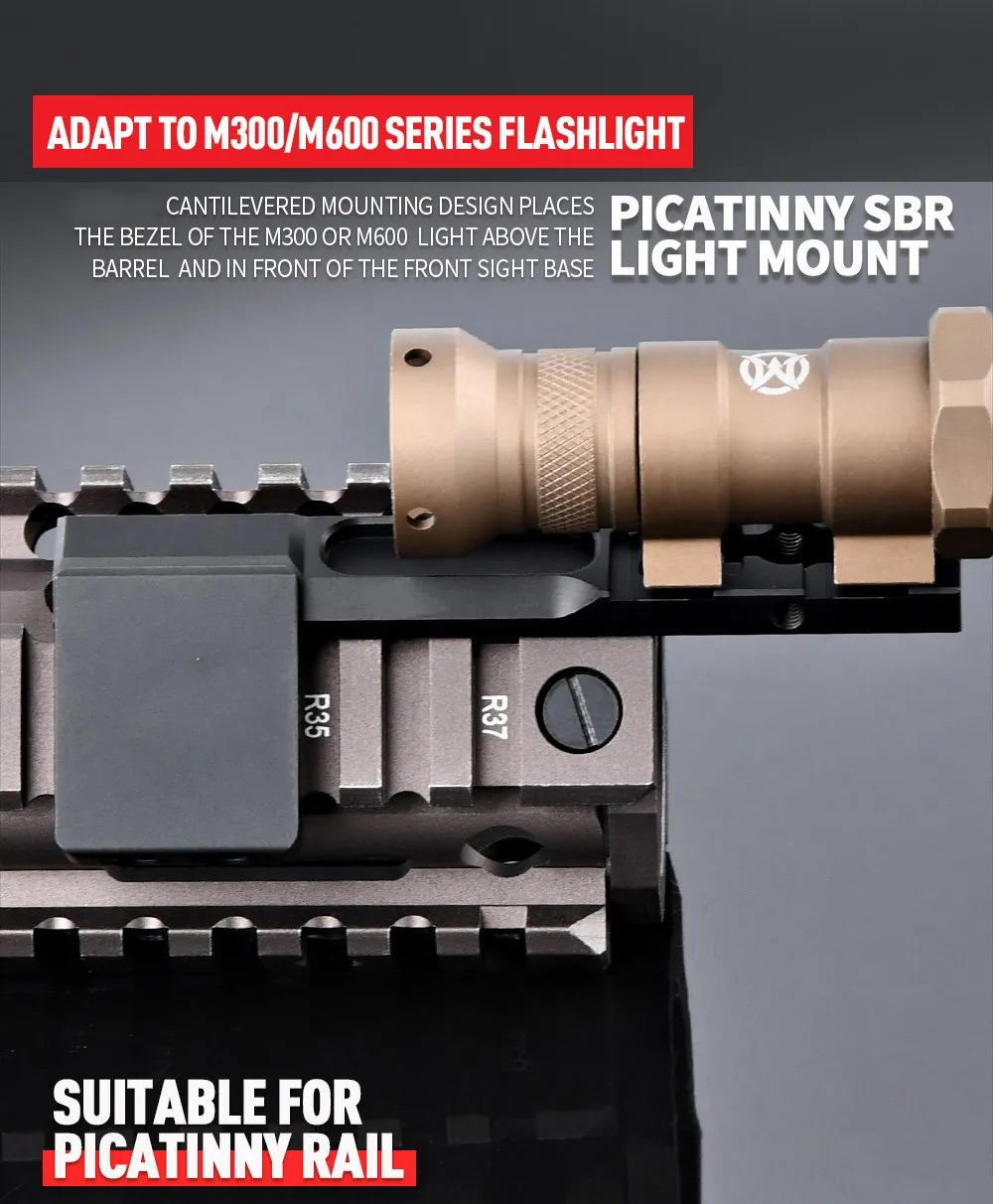 Wadsn Surefir-Base de montaje offset para linterna, accesorios de luz de explorador al aire libre, M300, M600, Airsoft, PIcatiny, Mlok keymod