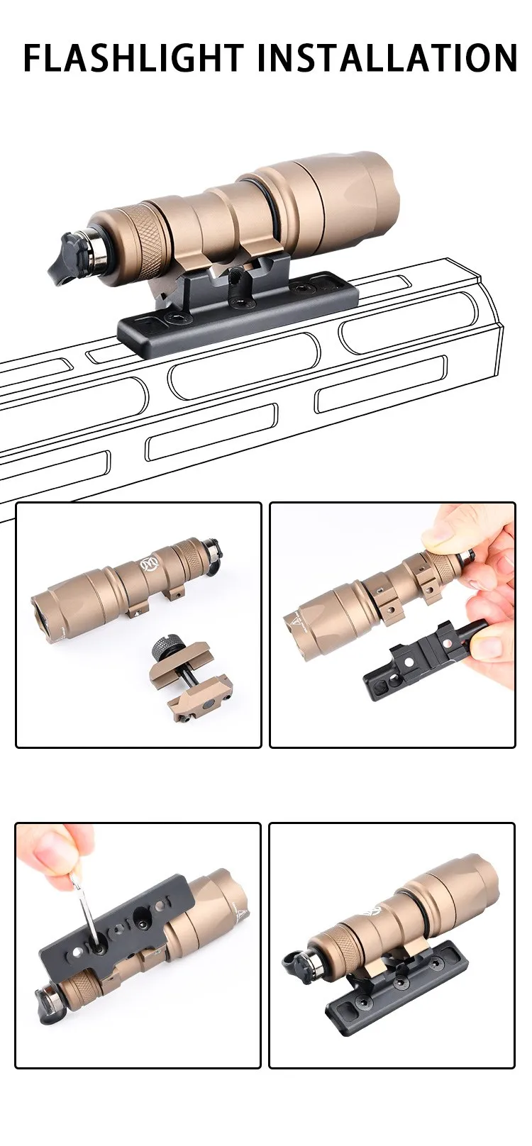 WADSN Surefir táctico M600 M300 Scout Light, soporte de linterna para arma, Mlok Keymo Rail, CNC, aleación de aluminio, Metal