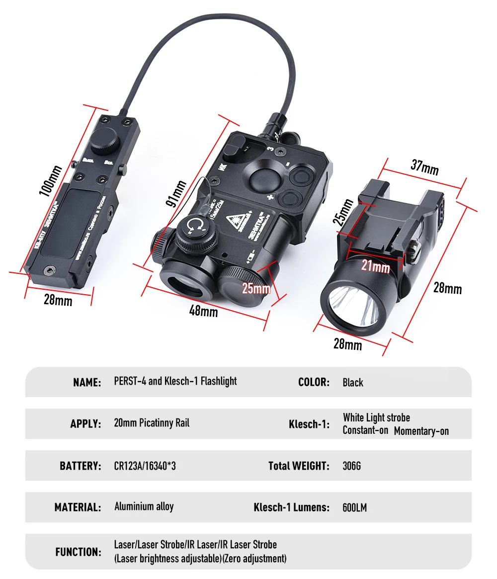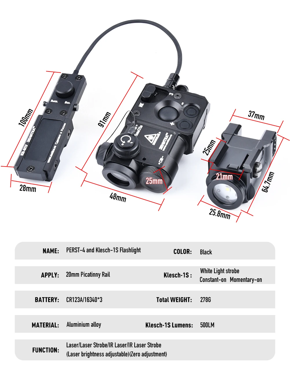 WADSN PERST 4 Red Green Blue IR Laser KLESCH 2P 2U Flashlight with KV-D2 Switch