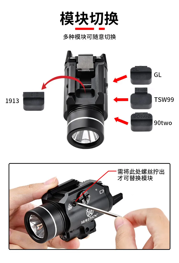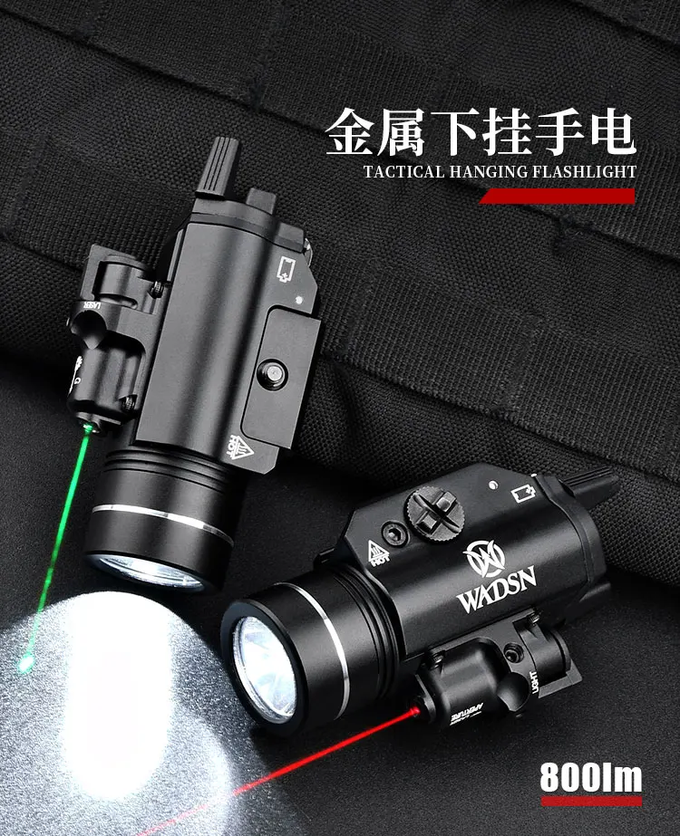 WADSN Tactical Red Green Laser White Light Metal Flashlight Pistol Hunting Scout Light LED Airsoft Fits 20mm Rail Glock 17 18 19