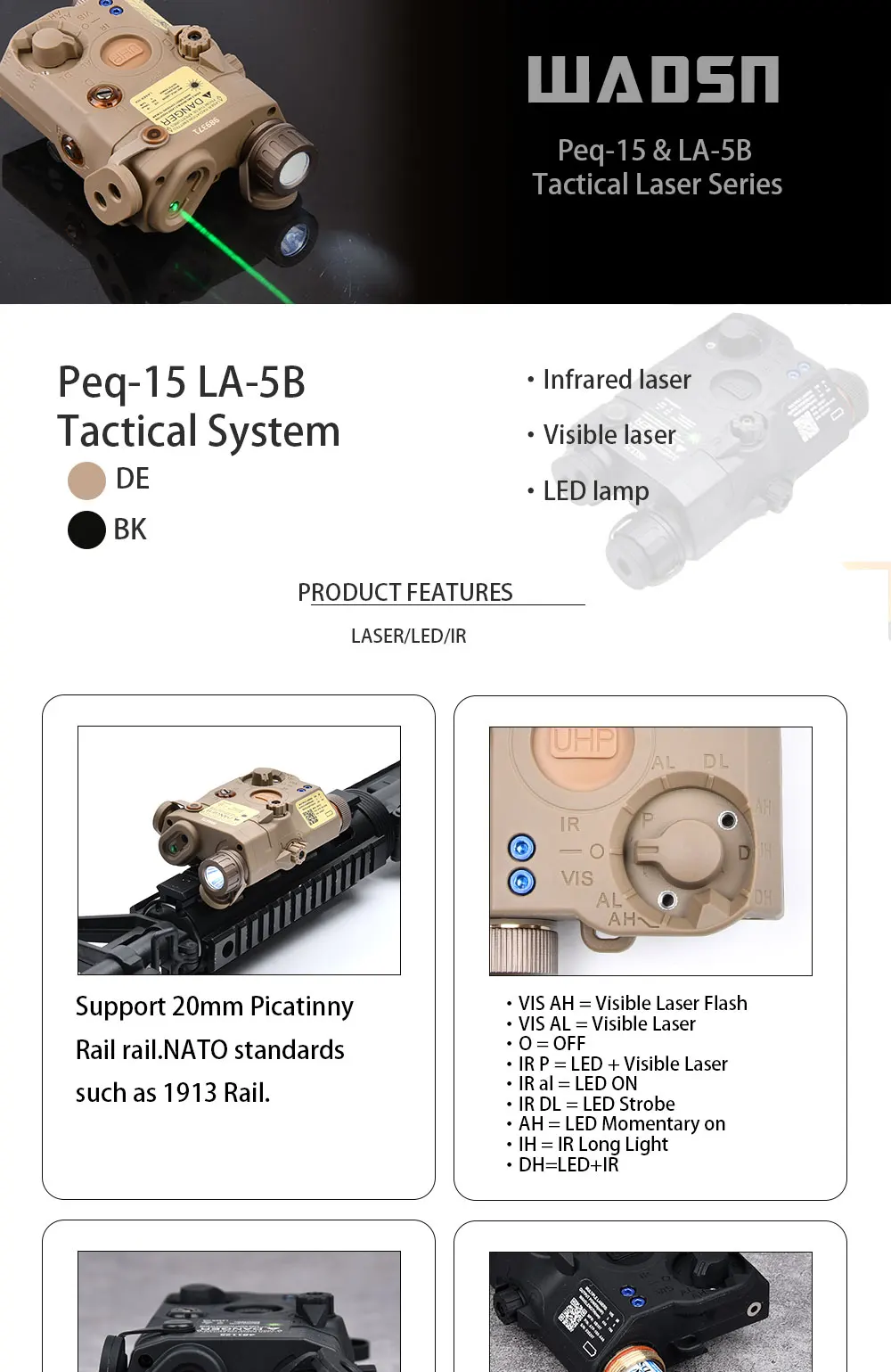 Wadsn táctico Airsoft PEQ-15 PEQ15 LA5C punto rojo verde azul IR luz de relleno arma indicador M300A M600C PEQ15 LA-5C UHP PEQ-15