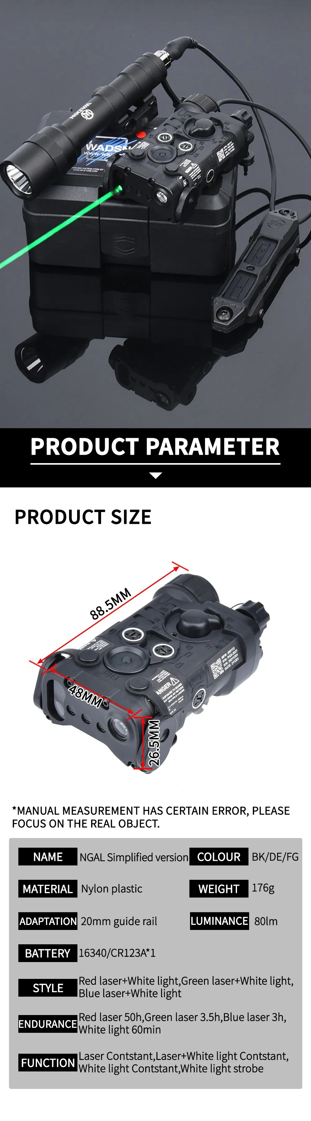 Wadsn táctico NGAL rojo verde azul IR láser M600U caza Scout conjunto de luces interruptor de presión de doble función Ajuste Mlok Keymod 20MMRail