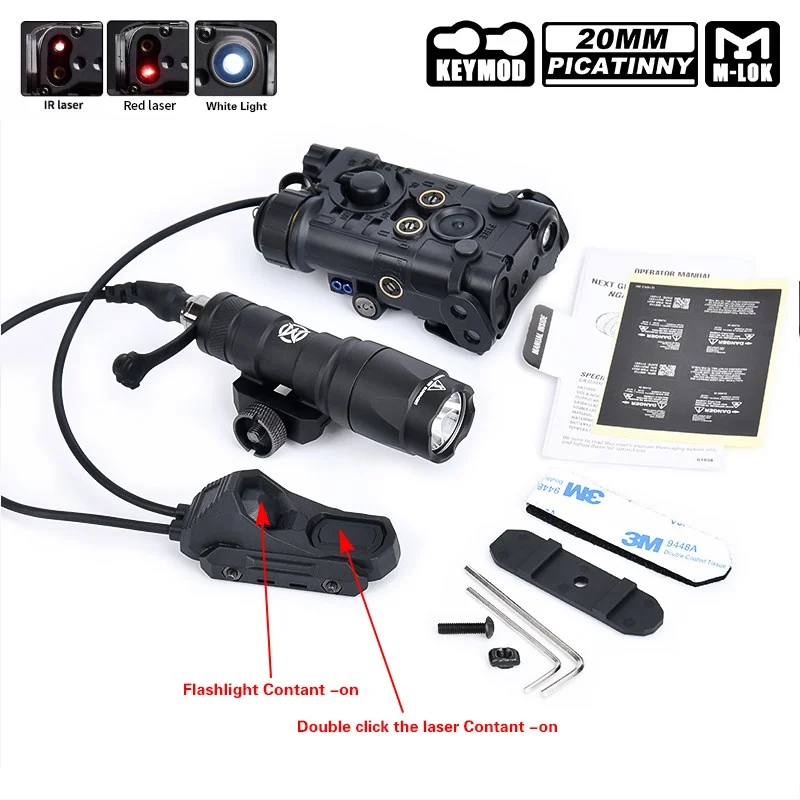 WADSN táctico NGAL rojo verde azul punto IR láser SF M600C M300A linterna de caza Scout luz LED con interruptor de Control Dual AXON