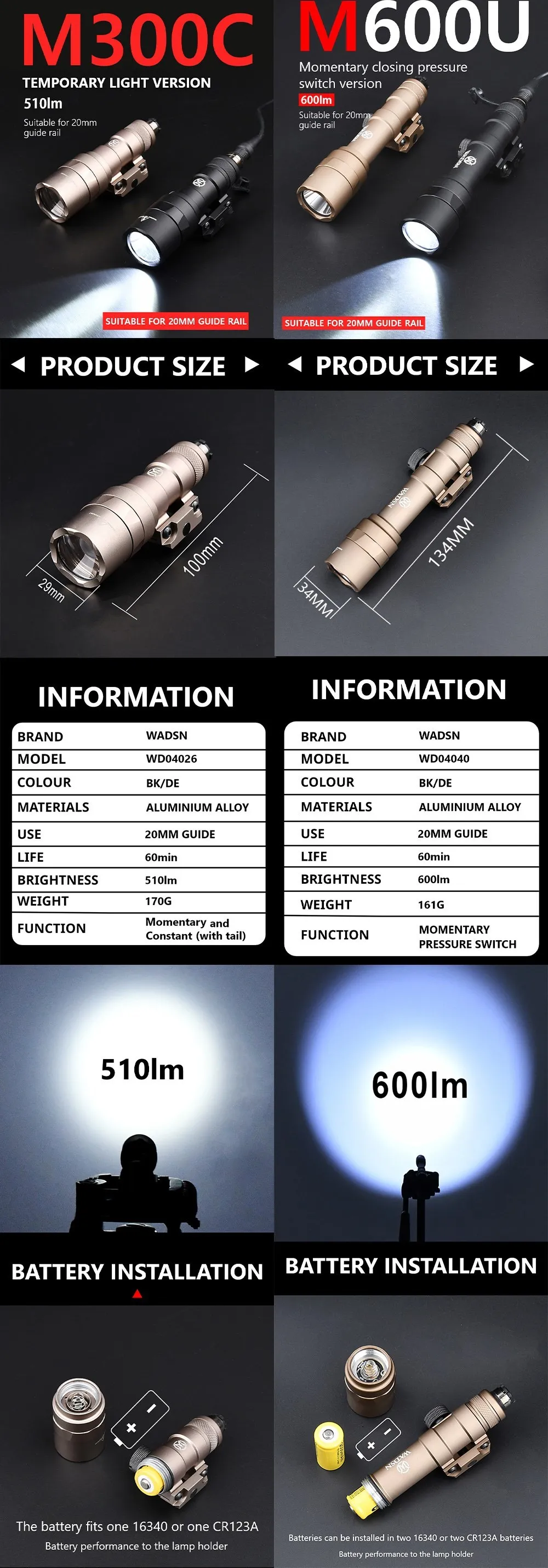 WADSN táctico SF Surefir M300 M600 M300B M300C M600U Airsoft potente linterna arma explorador lámpara caza Rifle luz antorcha