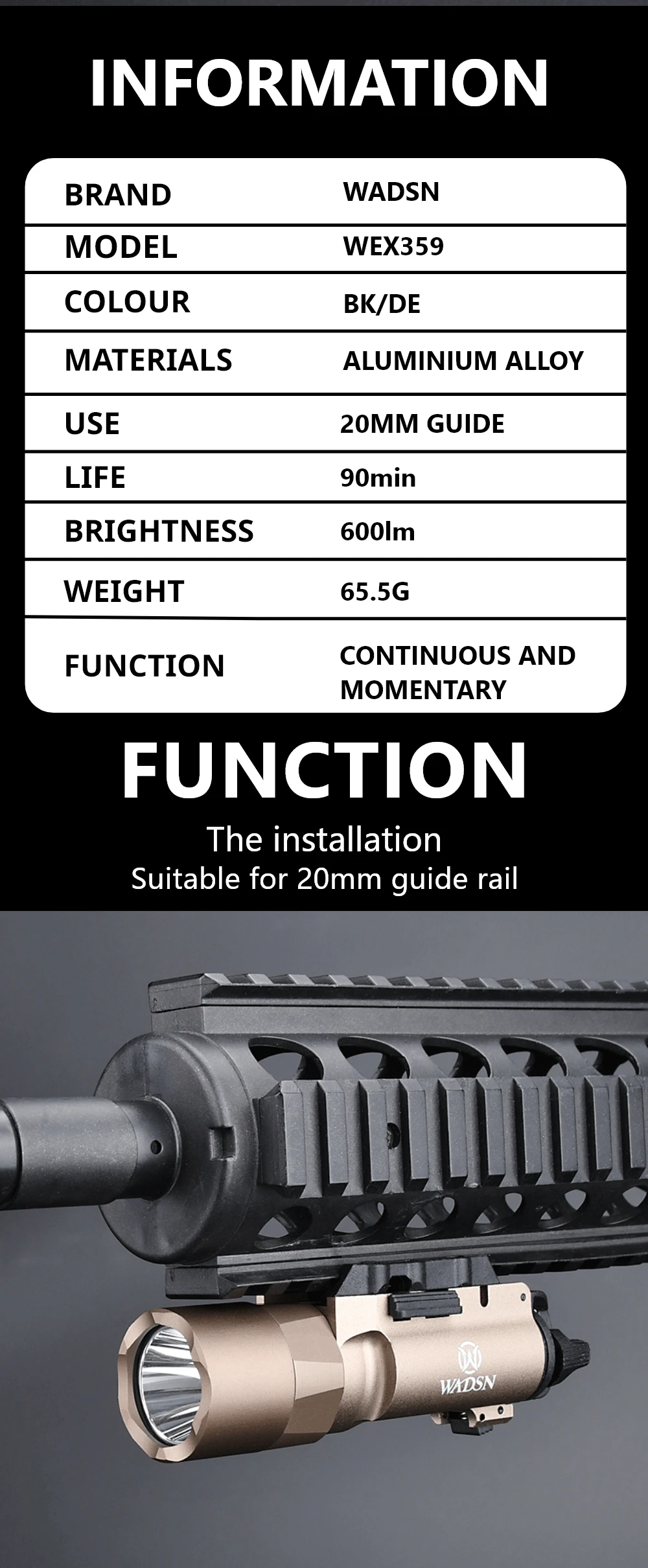 Sólo para £20 obtienes una buena linterna que viene en una bonita caja. Por lo que vale la pena el dinero. Puedes cambiar el tamaño del riel Picatinny para que encaje perfectamente a esos más anchos.
