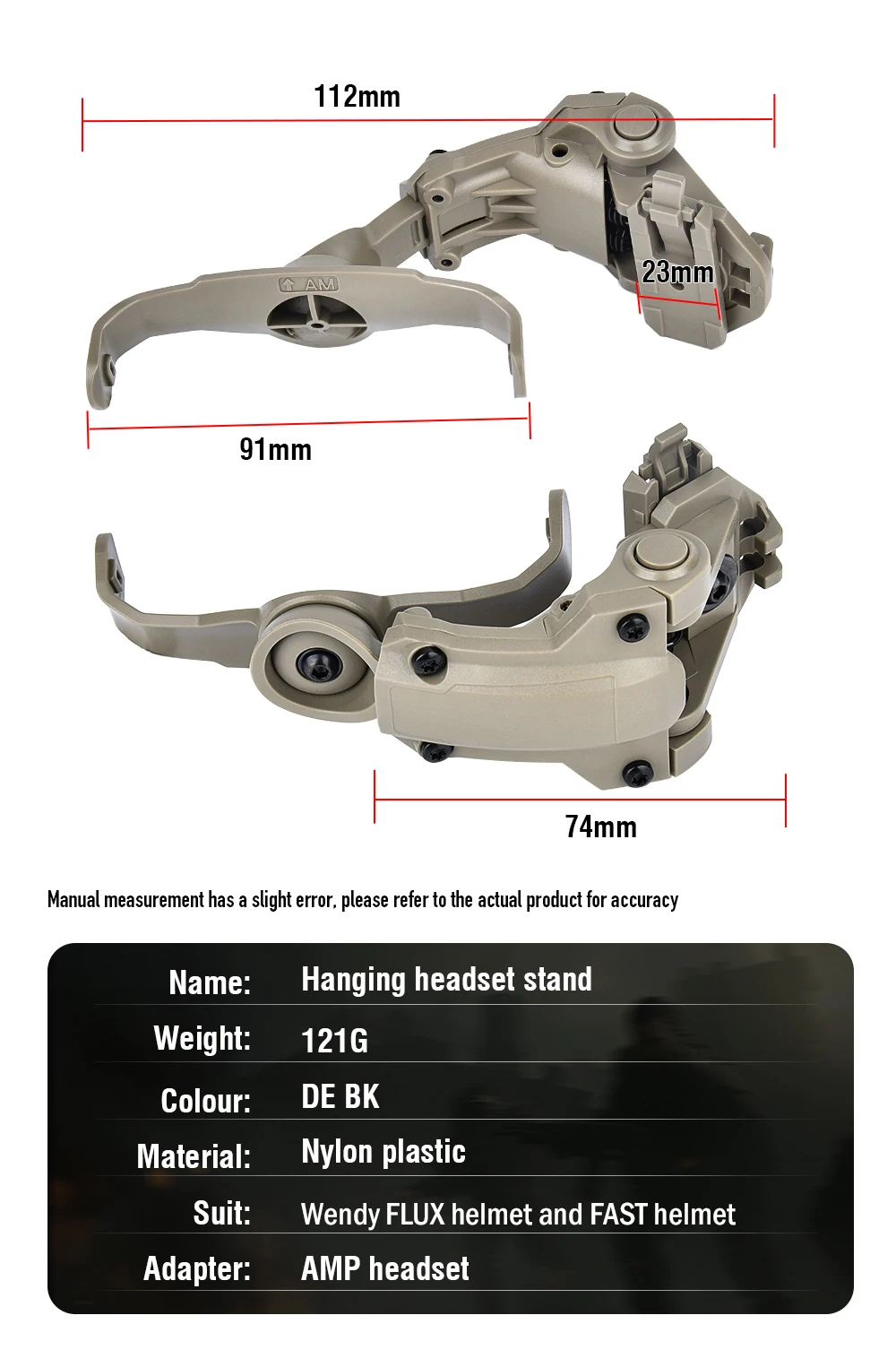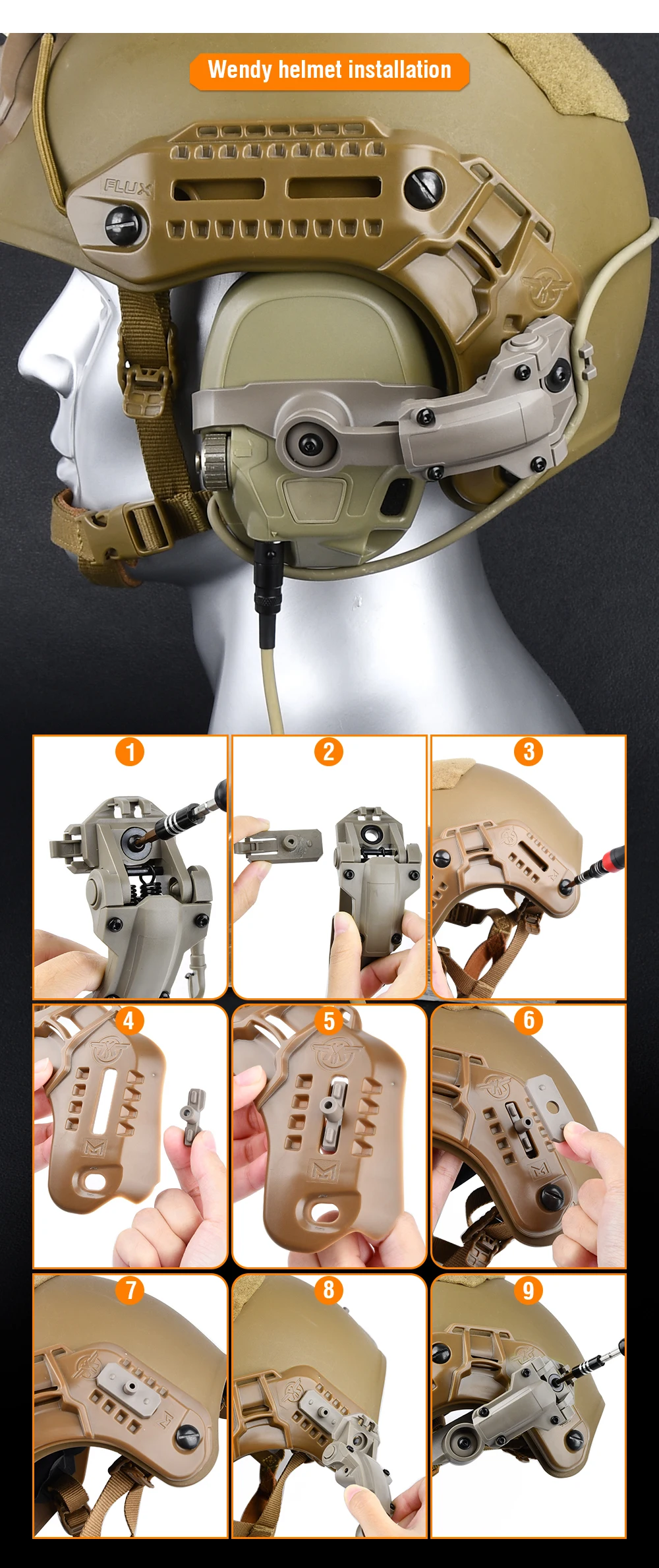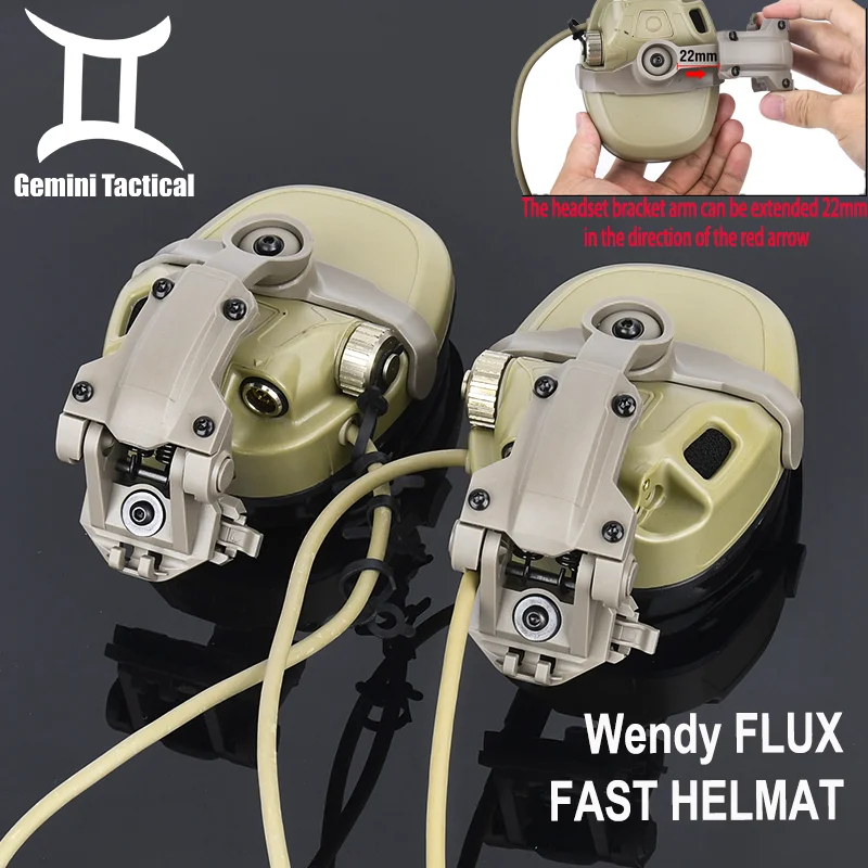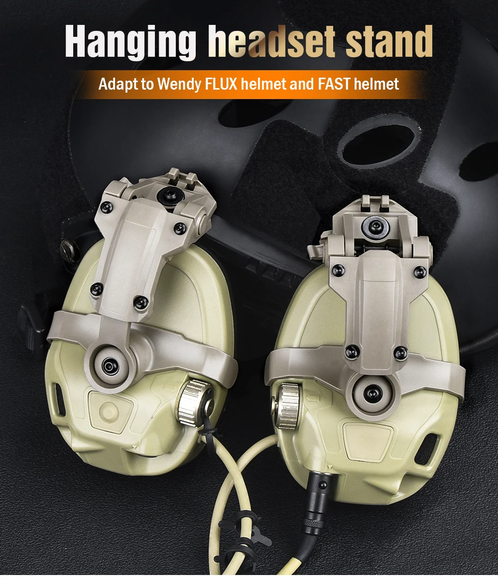 WADSN Wendy FLUX riel rápido para casco, soporte para auriculares con rotación de 360 °, adaptador de auriculares AMP, orejera colgante para espalda