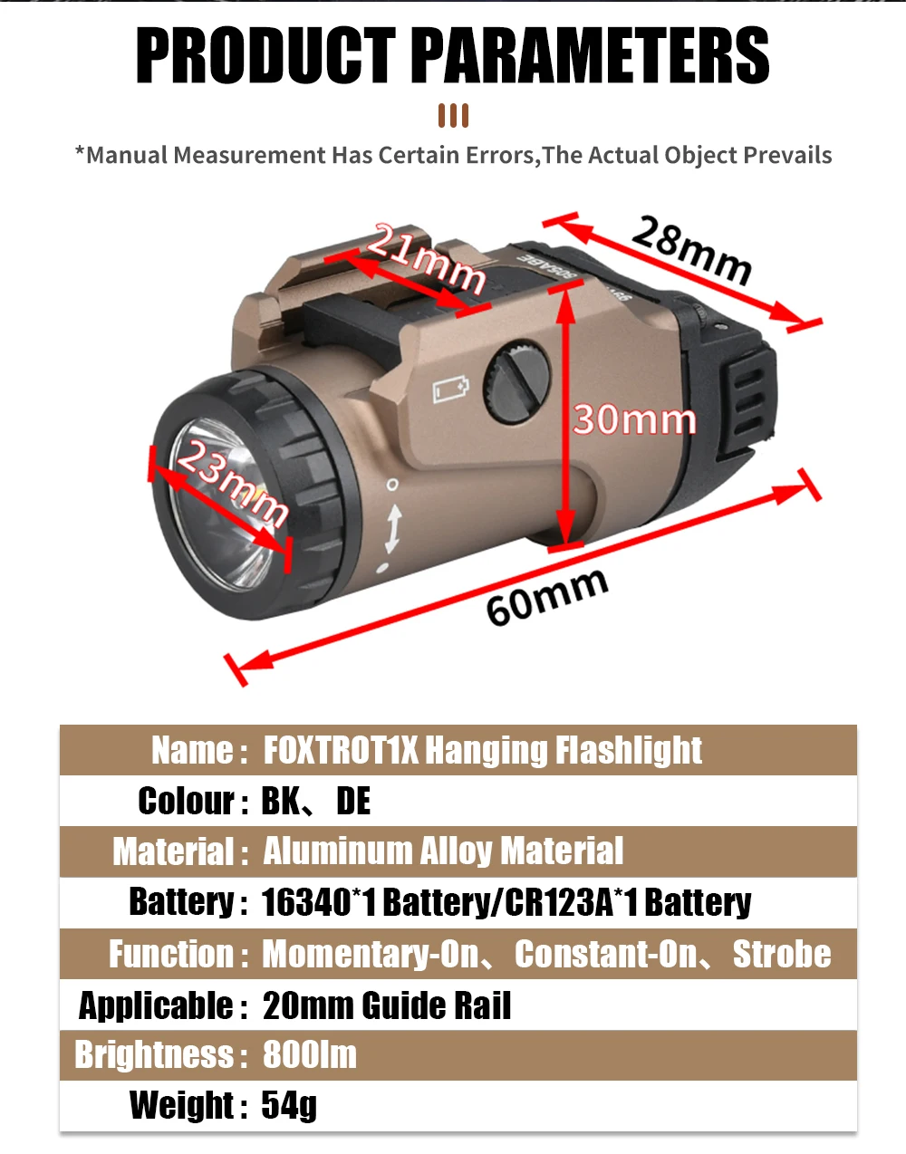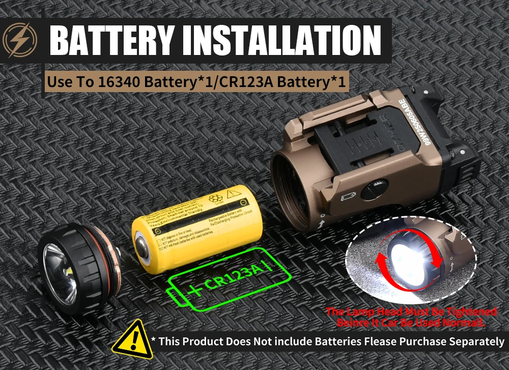 Batería: batería de 3,7 V 16340 o batería CR123A (el producto no incluye batería)