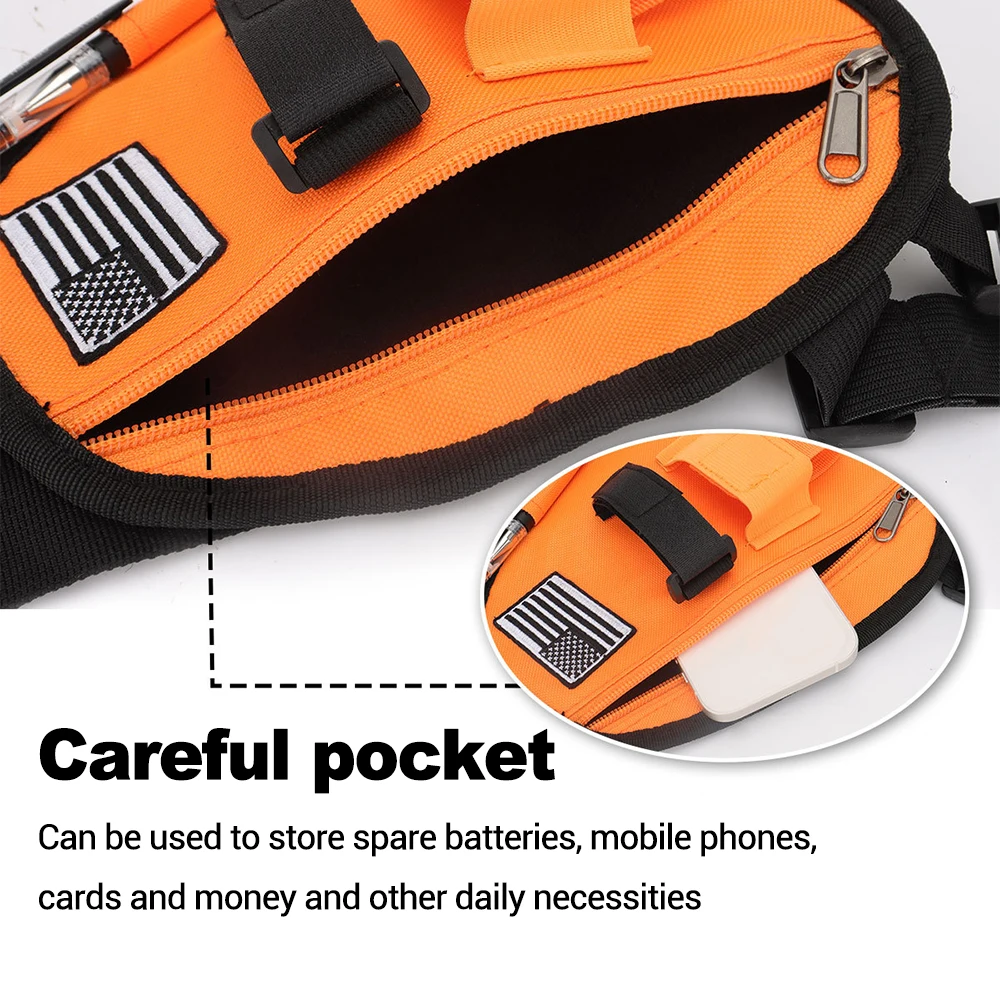 2. 【Gran espacio de almacenamiento】 Puede equiparse con walkie-talkies o dispositivos inalámbricos como teléfonos móviles, GPS, detectores electrónicos, etc.Es más cómodo y rápido.El bolsillo también puede guardar llaves, mapas, teléfonos móviles y otros accesorios.