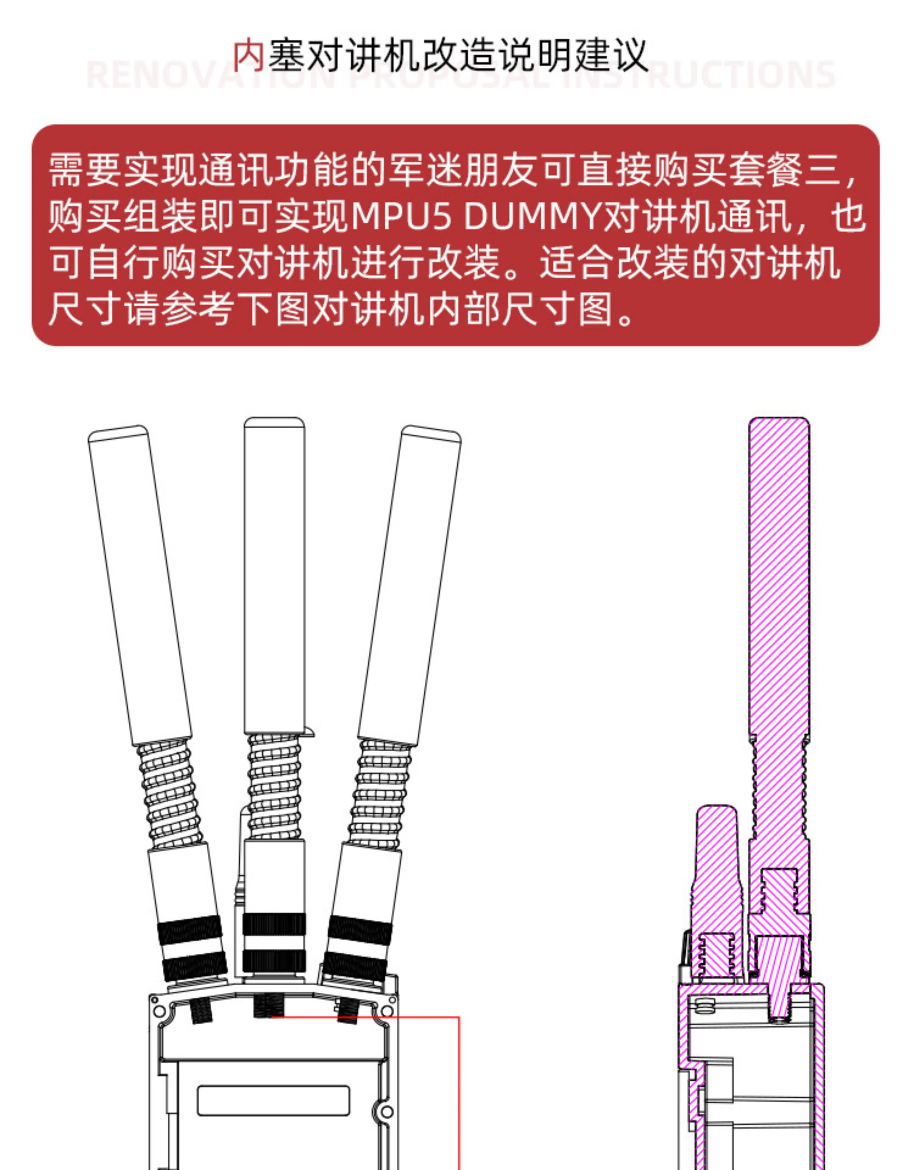 Radio táctica de walkie-talkie MPU5, modelo ficticio de tres palos sin función