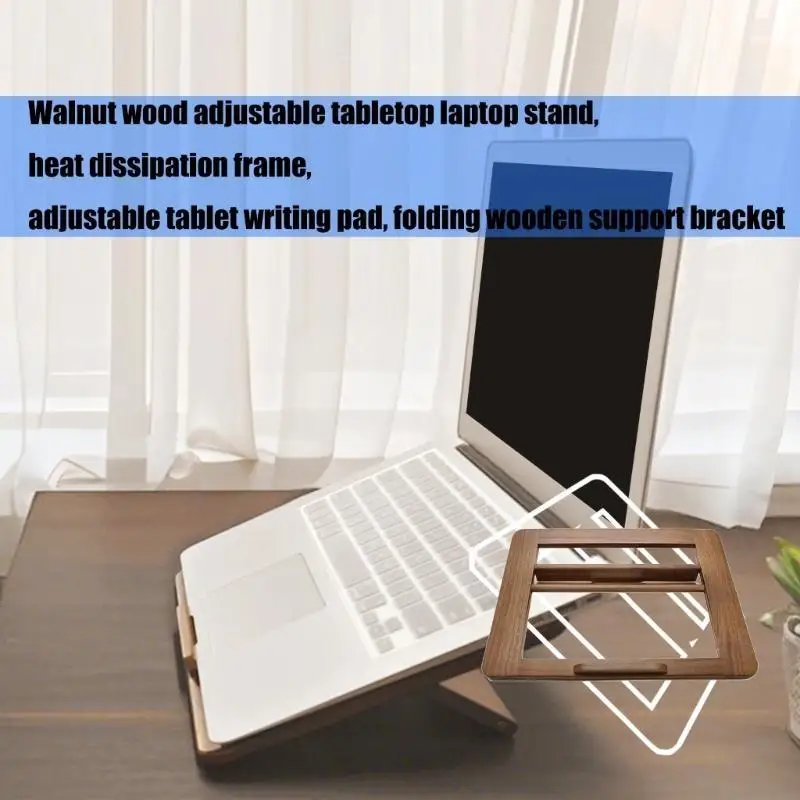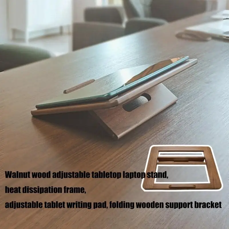 Características:OOTDTYde nueces, este soporte ajustable para computadora portátil combina durabilidad con una elegante estética de vetas de madera y al mismo tiempo ofrece un ajuste ergonómico para mayor comodidad visual.