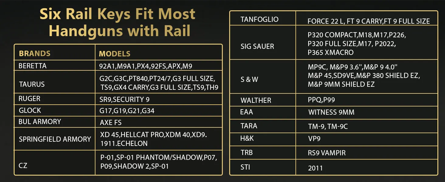 Compatibilidad universal: Esta linterna de pistola es compatible con la mayoría de pistolas universales equipadas con rieles. Viene con 6 llaves diferentes para el riel, que se pueden acoplar fácilmente a diferentes pistolas.