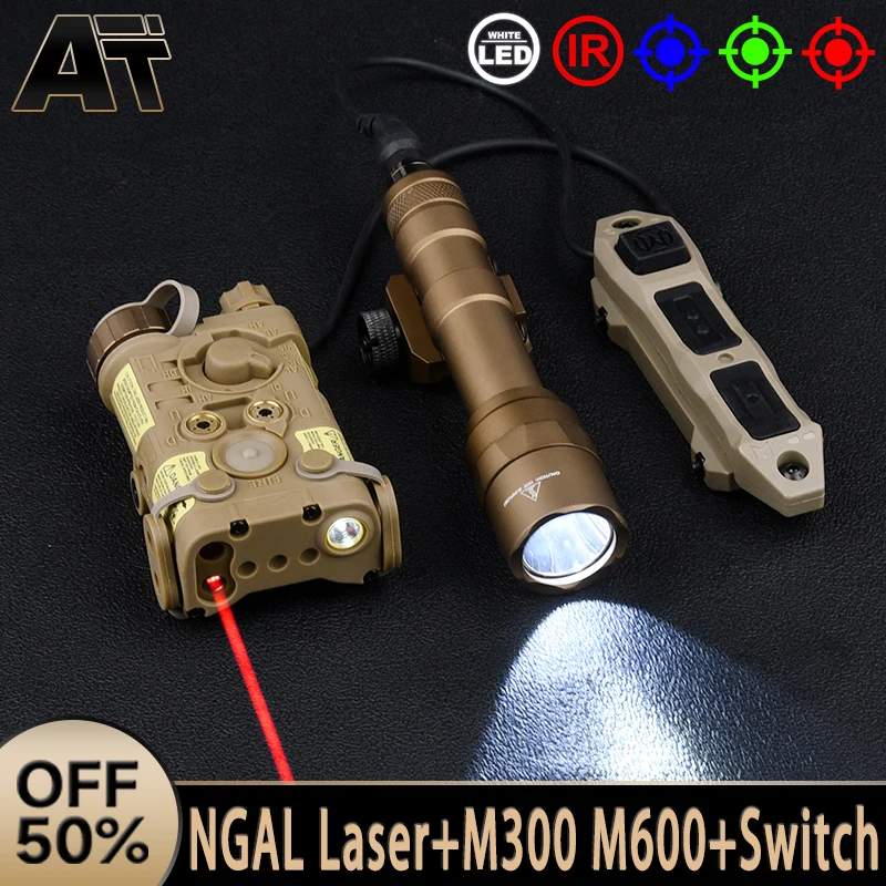 WDASN NGAL táctico rojo azul verde IR láser M300 M600 WhiteLight linterna con interruptor de Control Dual caza Airsoft lámpara de arma