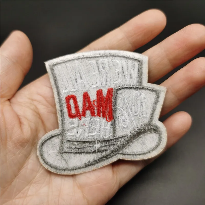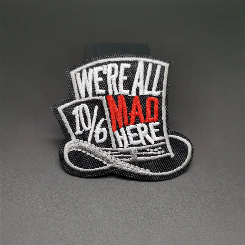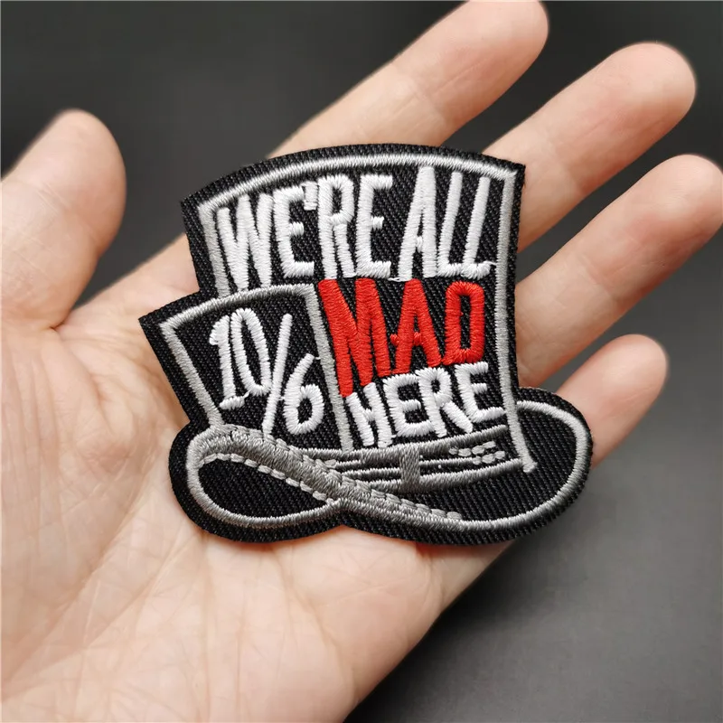 We ALL MAD HERE tamaño: 5x5,4 cm, parche bordado DIY, apliques para ropa, parches para planchar para ropa, costura decorativa
