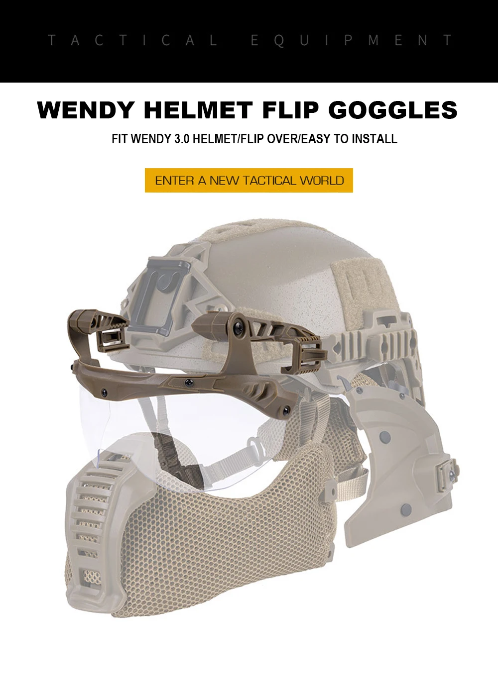 Wendy 3.0 casco táctico conjunto de protección completa con media mascarilla protector bucal/gafas abatibles/cubierta para oreja para equipo de Paintball Airsoft