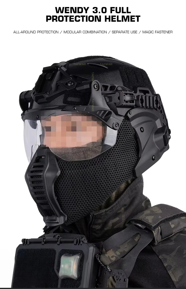 Wendy 3,0 casco táctico de protección completa con gafas abatibles máscara de cubierta de oreja para caza Airsoft Paintball CS entrenamiento de juegos