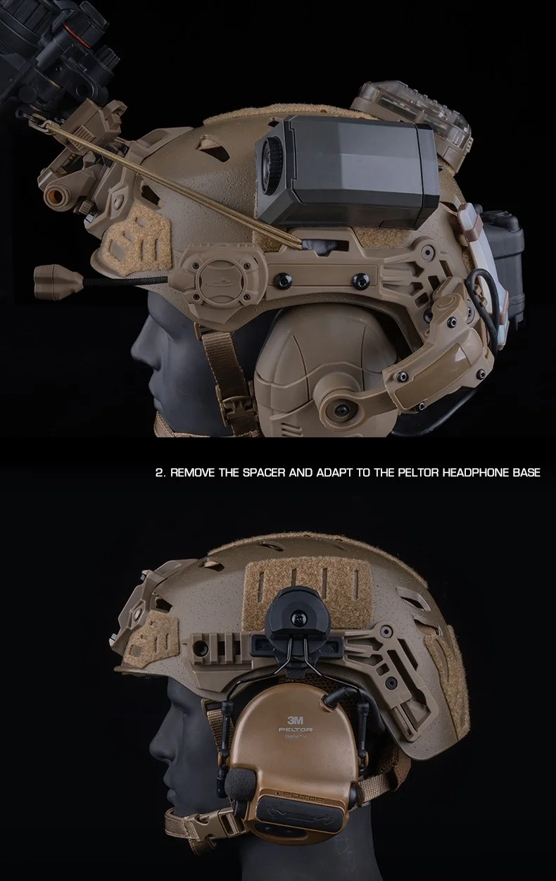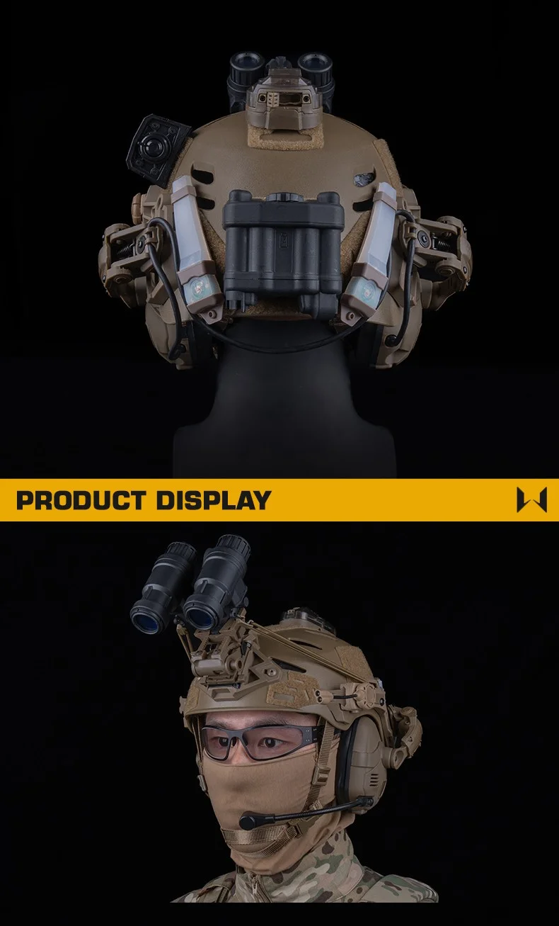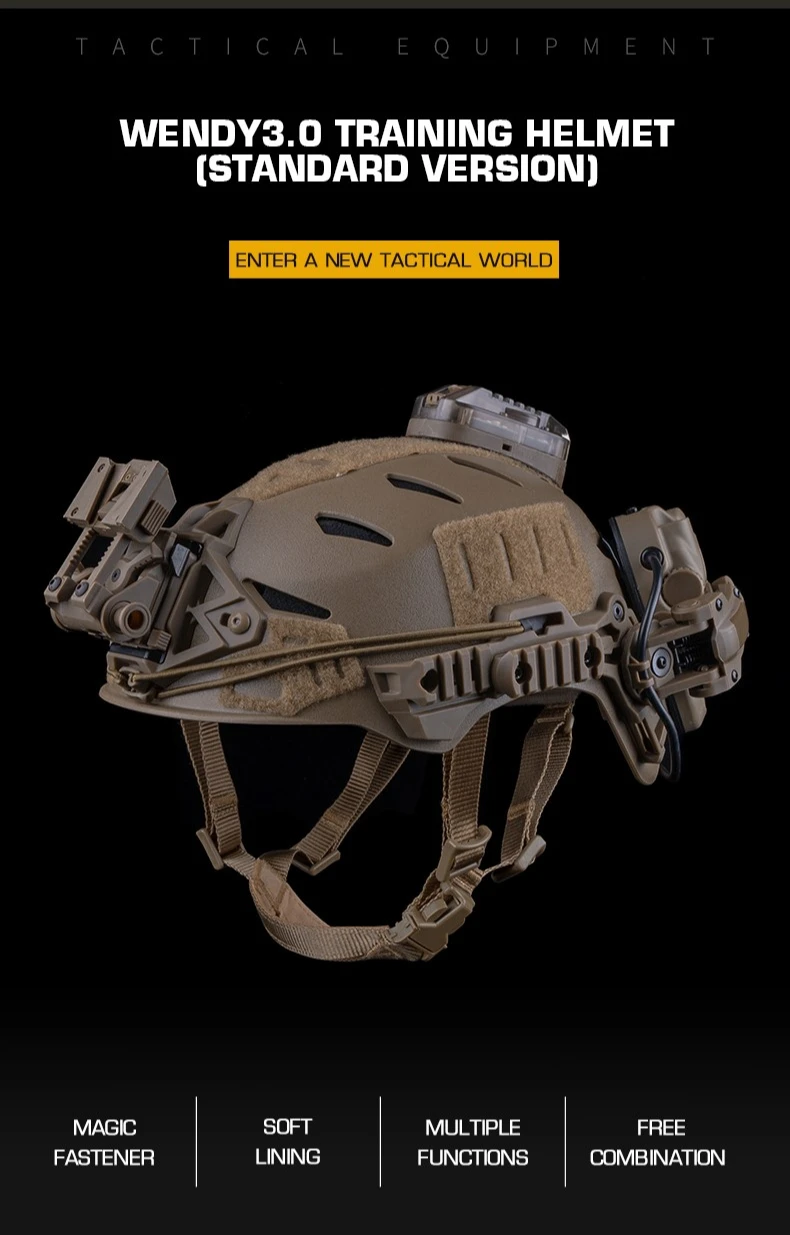 el casco se ve un plástico muy duradero, viene con sus almohadillas y unos ganchos que van acoplados a los costados del casco para sostener unas gafas de visión nocturna, se siente cómodo y muy ajustado