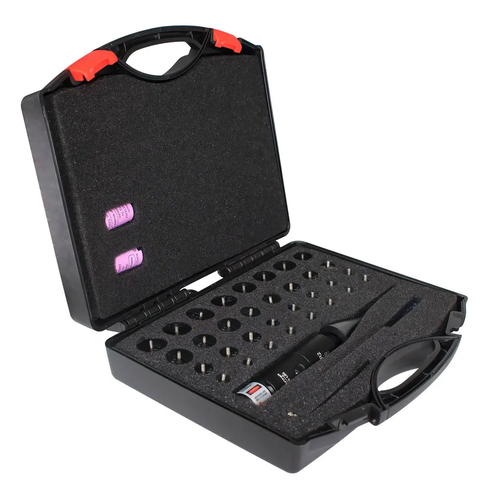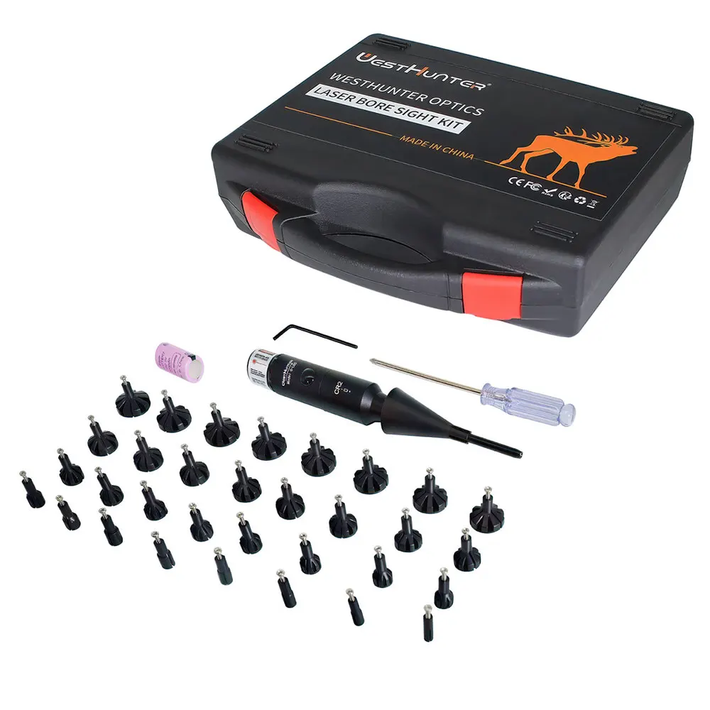 WestHunter Kit de mira láser con 32 adaptadores 0,17 a 12GA Láser de mira de orificio brillante rojo o verde con interruptor de botón