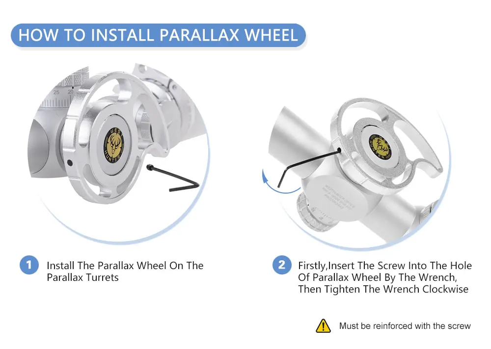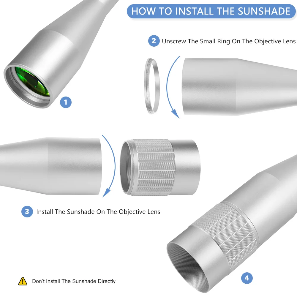 2. Primer plano focal acabado plateado con rueda de paralaje de alcance a juego;