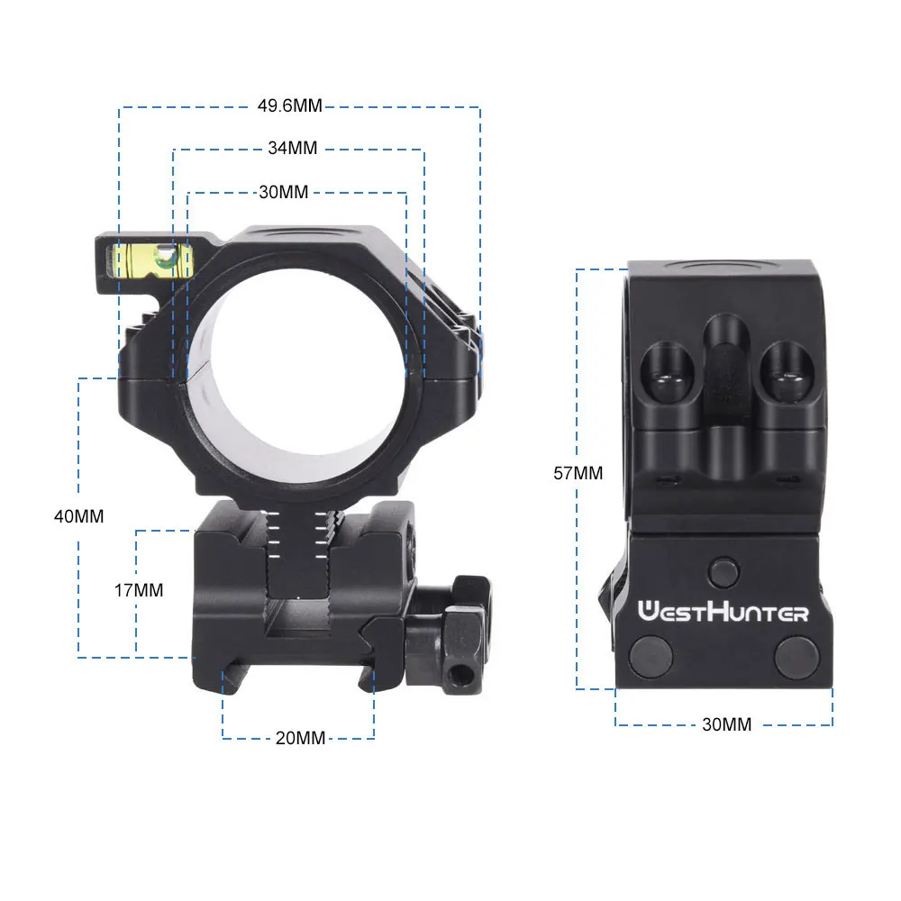 WestHunter-visor táctico de altura ajustable, anillos de montaje Picatinny para caza, 34mm/30mm/25,4mm de diámetro, 20mm